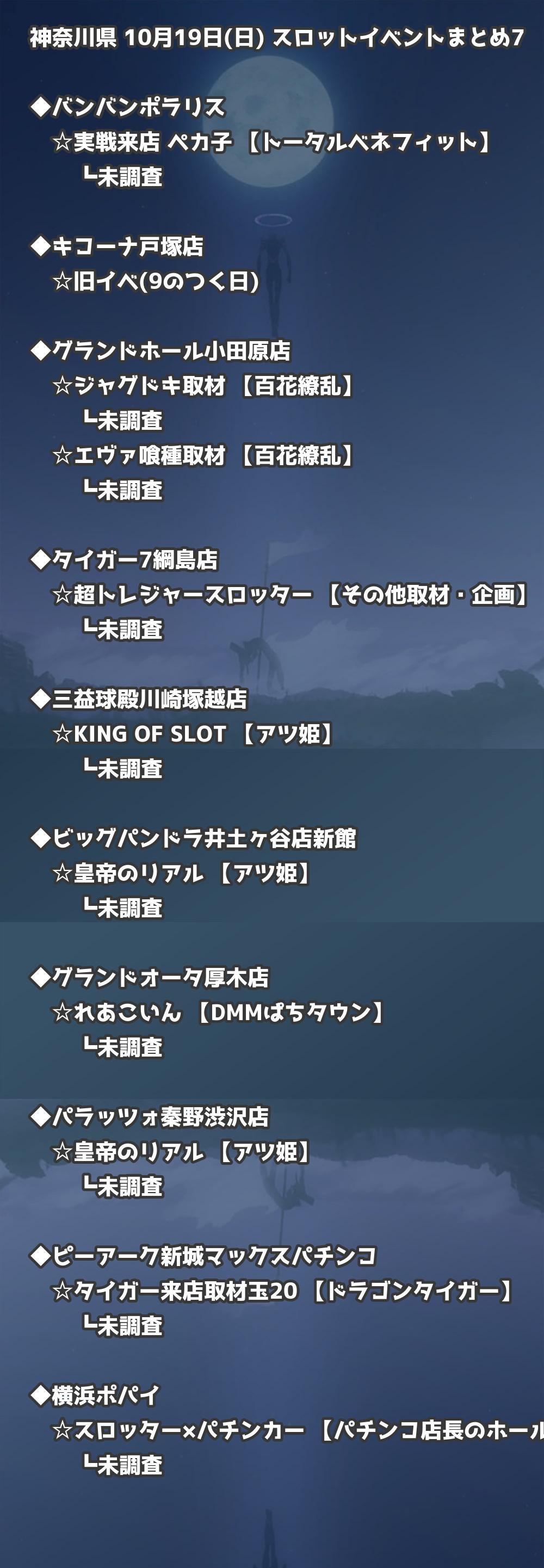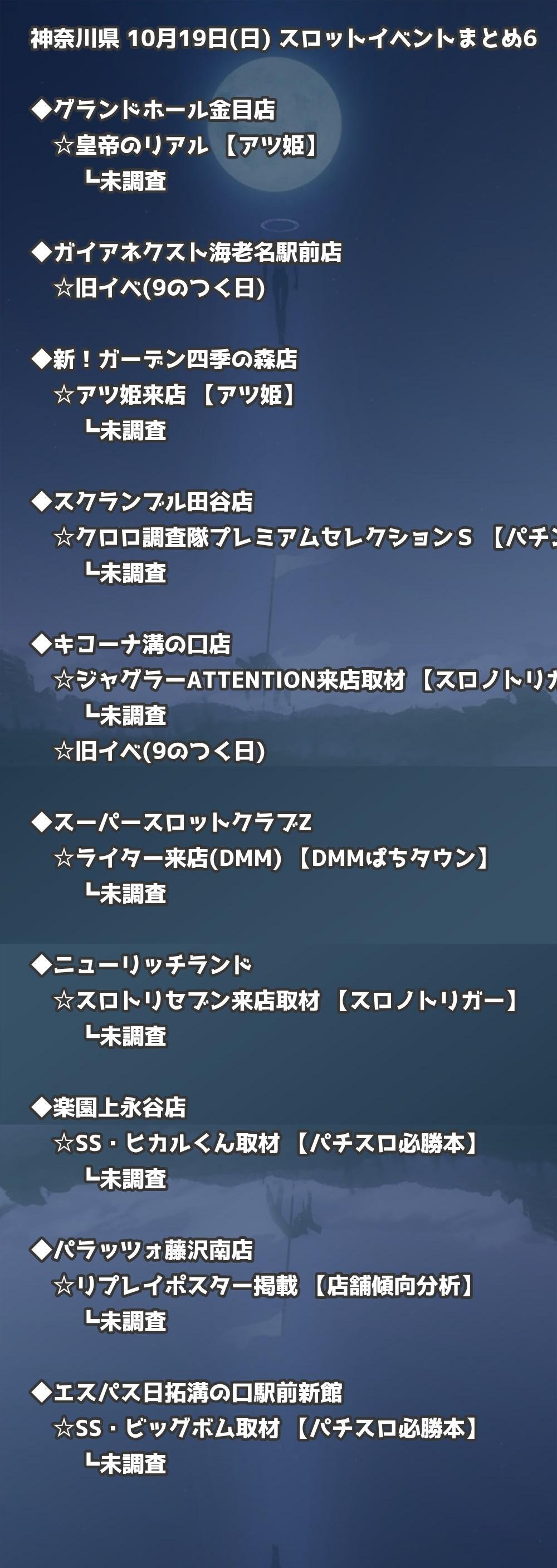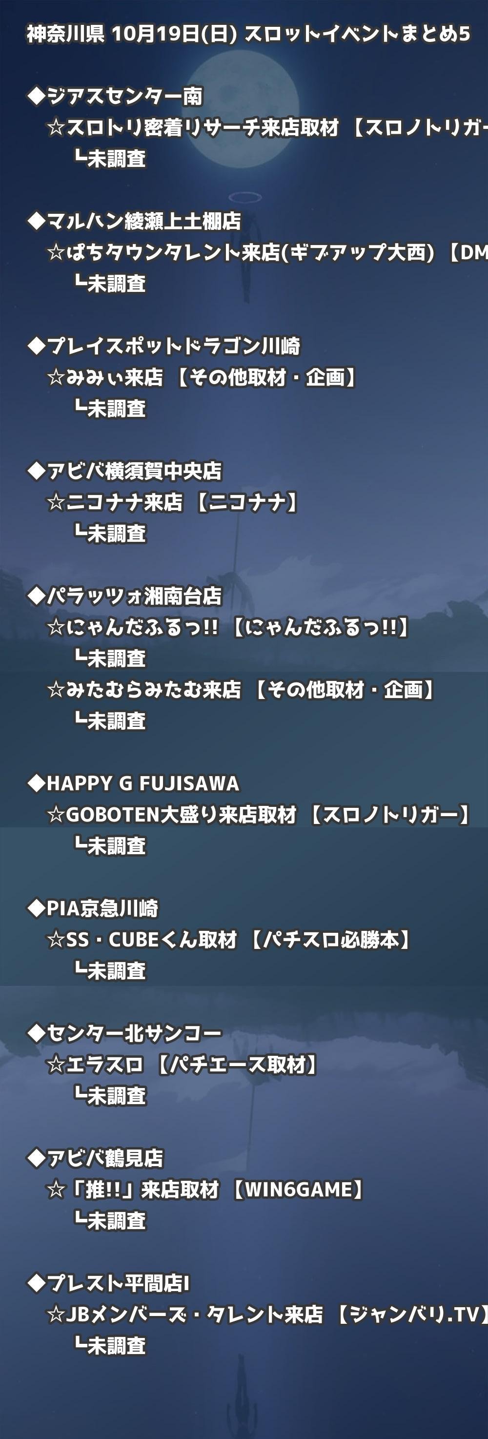 📊 神奈川県 10月19日(日) 勝てるパチンコ・スロット取材店舗一覧|おすすめ順