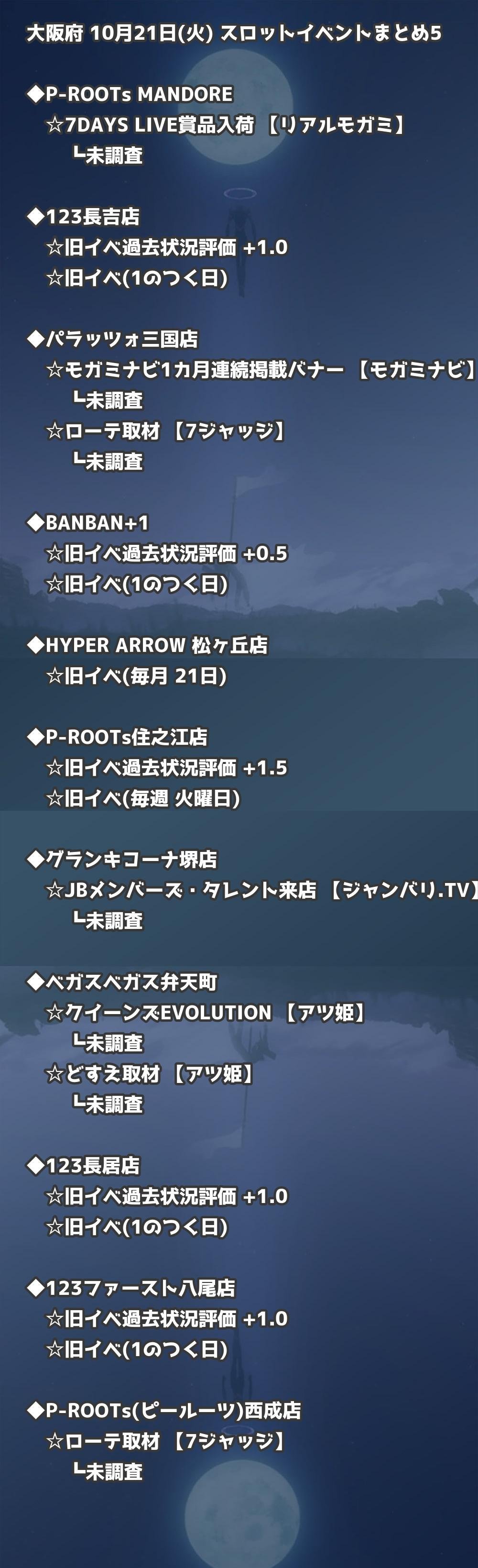 📊 大阪府 10月21日(火) 勝てるパチンコ・スロット取材店舗一覧|おすすめ順