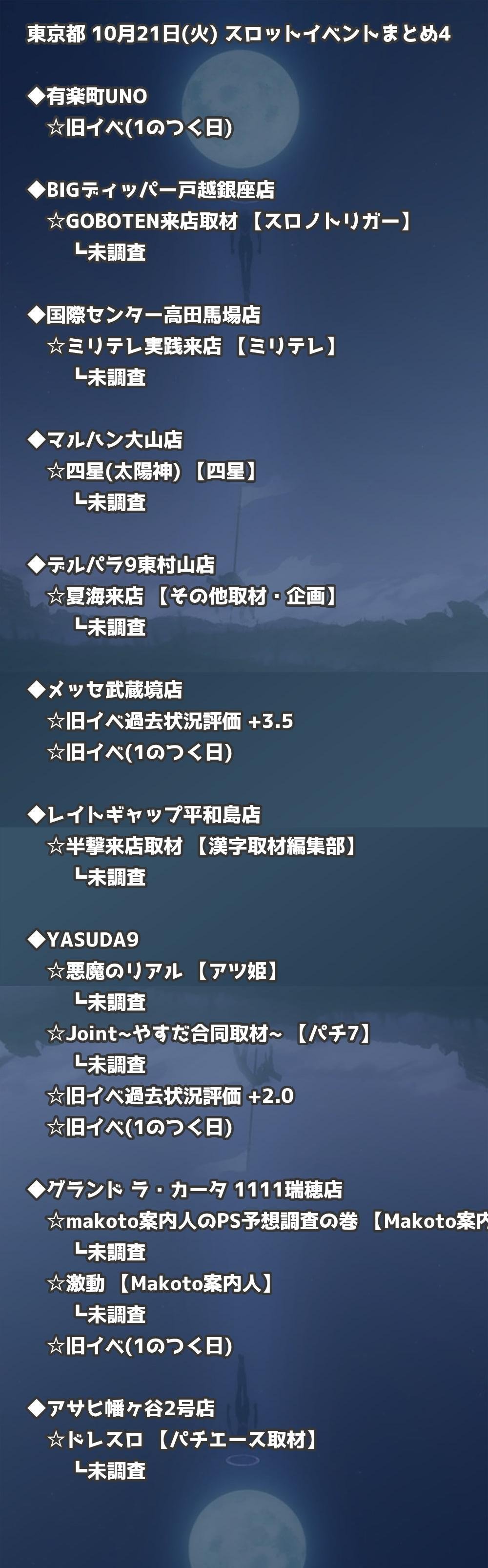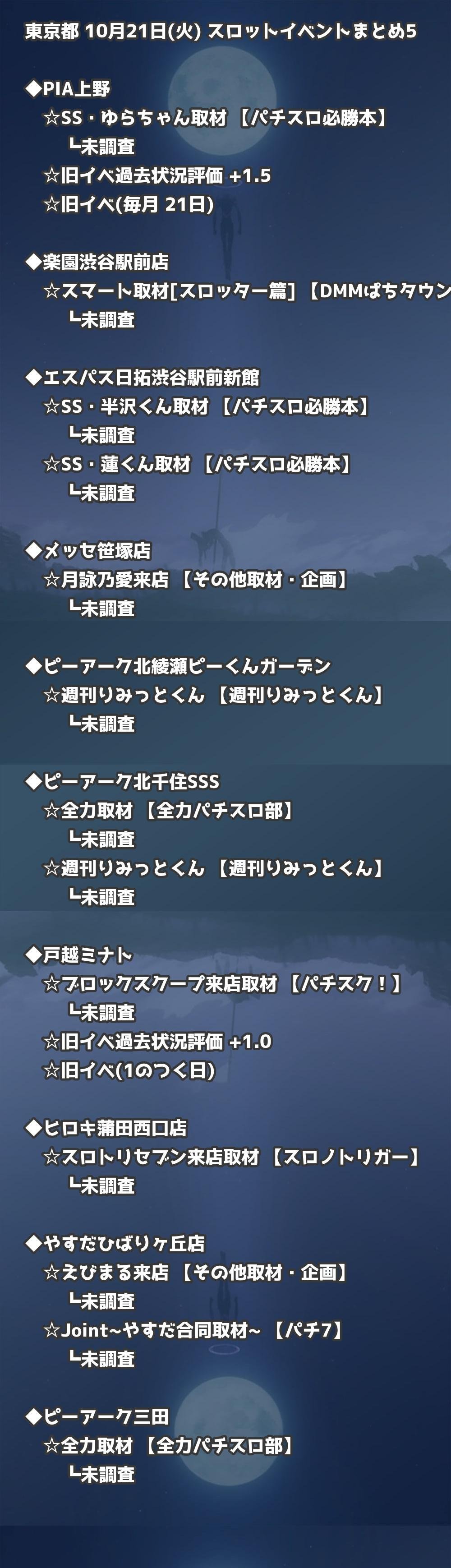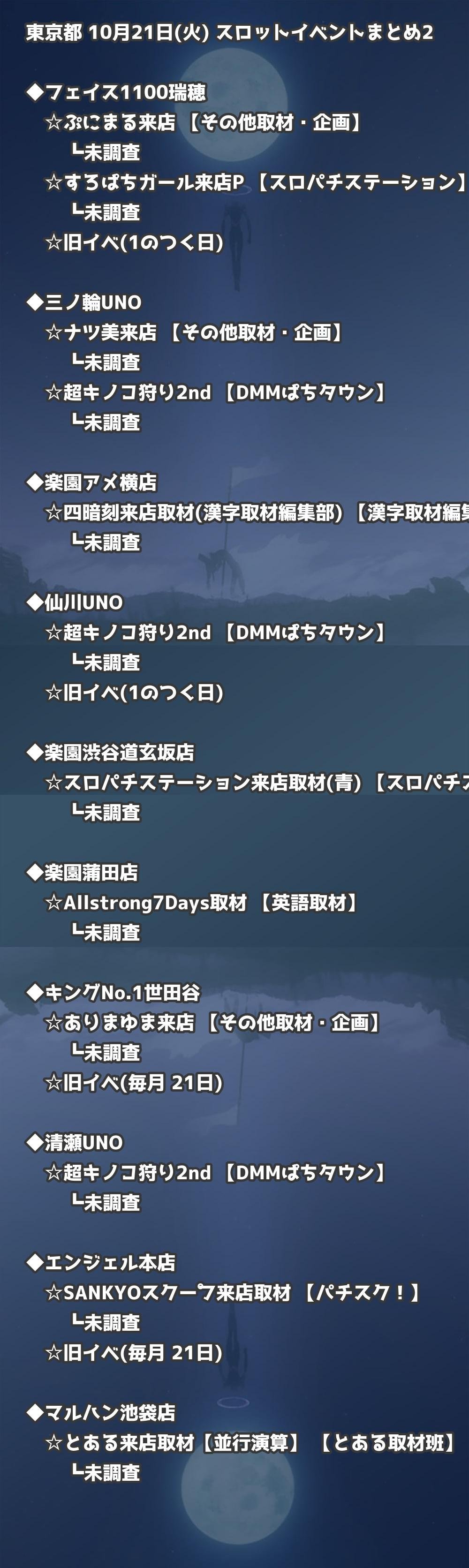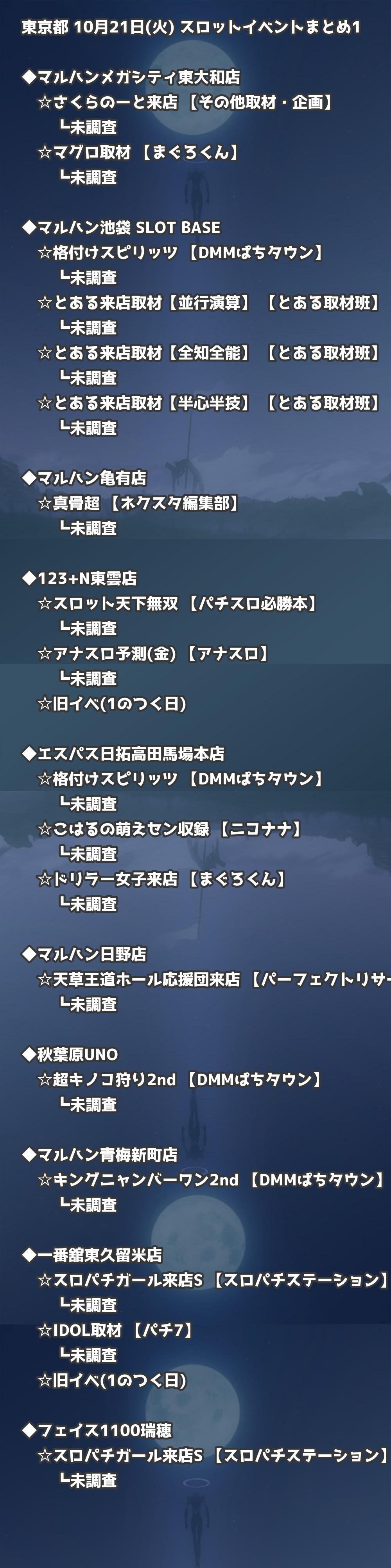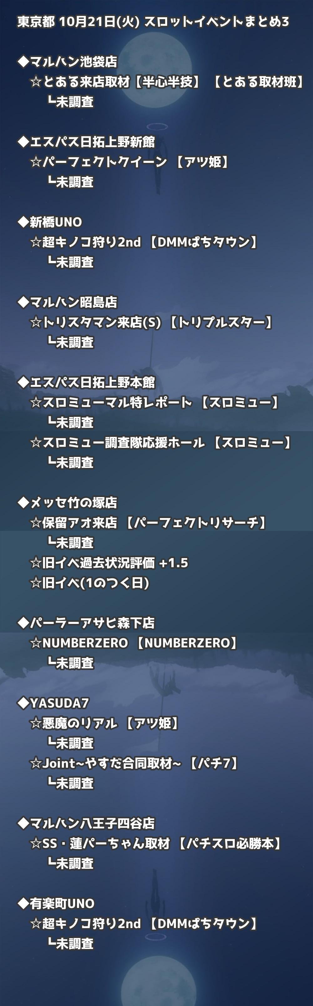 📊 東京都 10月21日(火) 勝てるパチンコ・スロット取材店舗一覧|おすすめ順