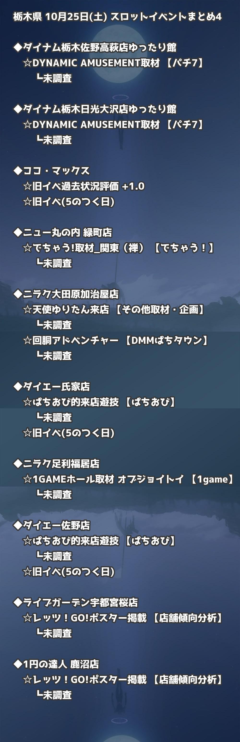 📊 栃木県 10月25日(土) 勝てるパチンコ・スロット取材店舗一覧|おすすめ順