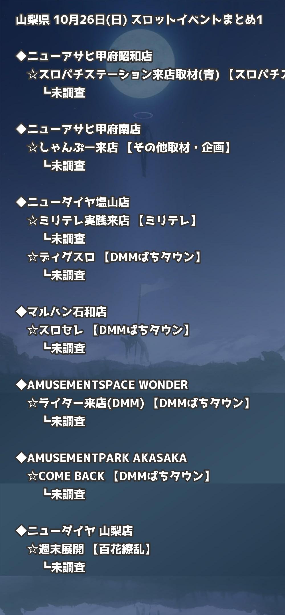 【山梨県】10月26日(日) パチンコホールイベント取材まとめ記事です。