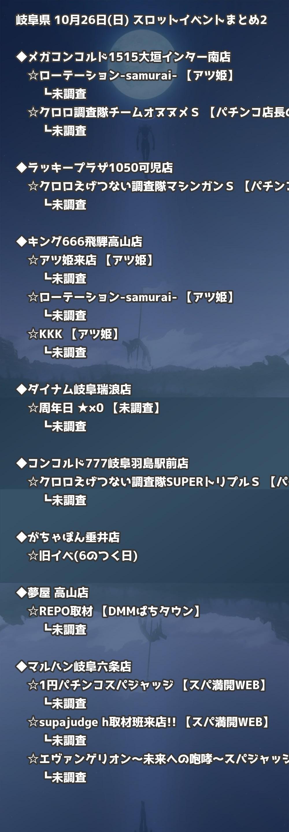 📊 岐阜県 10月26日(日) 勝てるパチンコ・スロット取材店舗一覧|おすすめ順