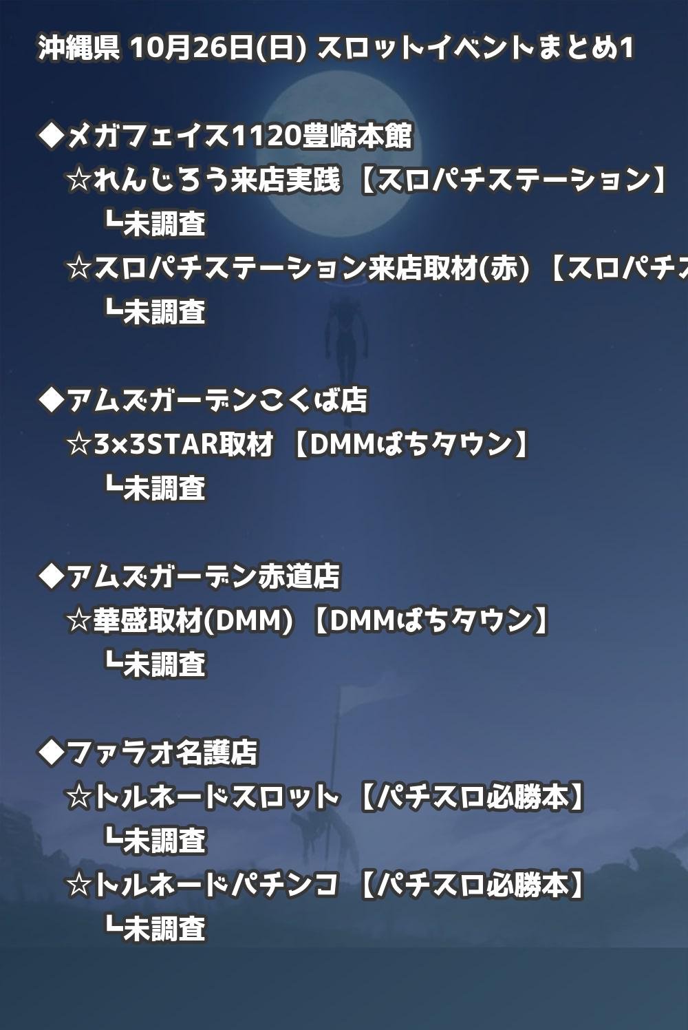 📊 沖縄県 10月26日(日) 勝てるパチンコ・スロット取材店舗一覧|おすすめ順