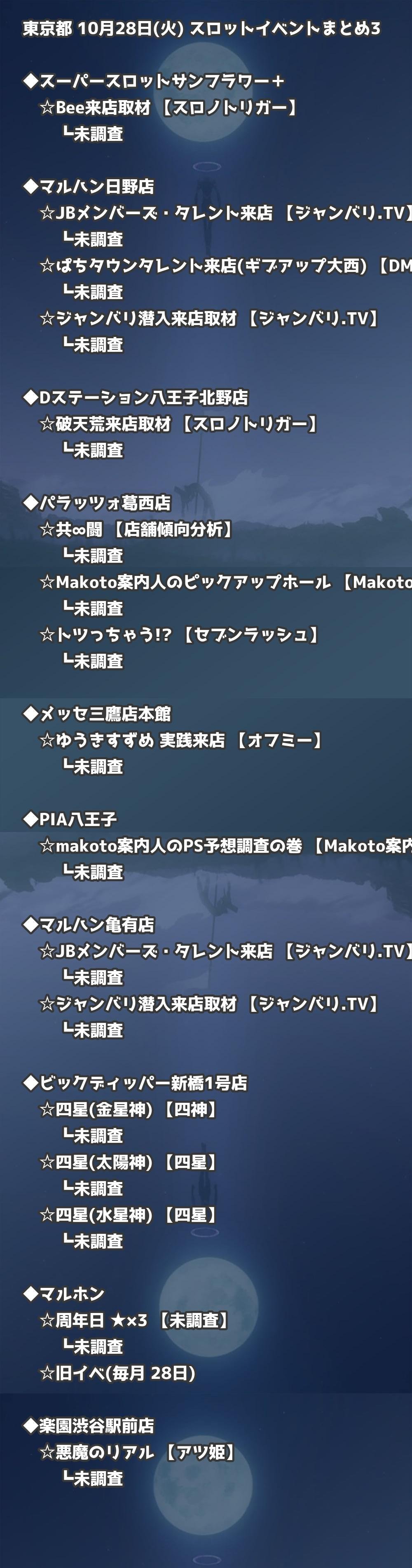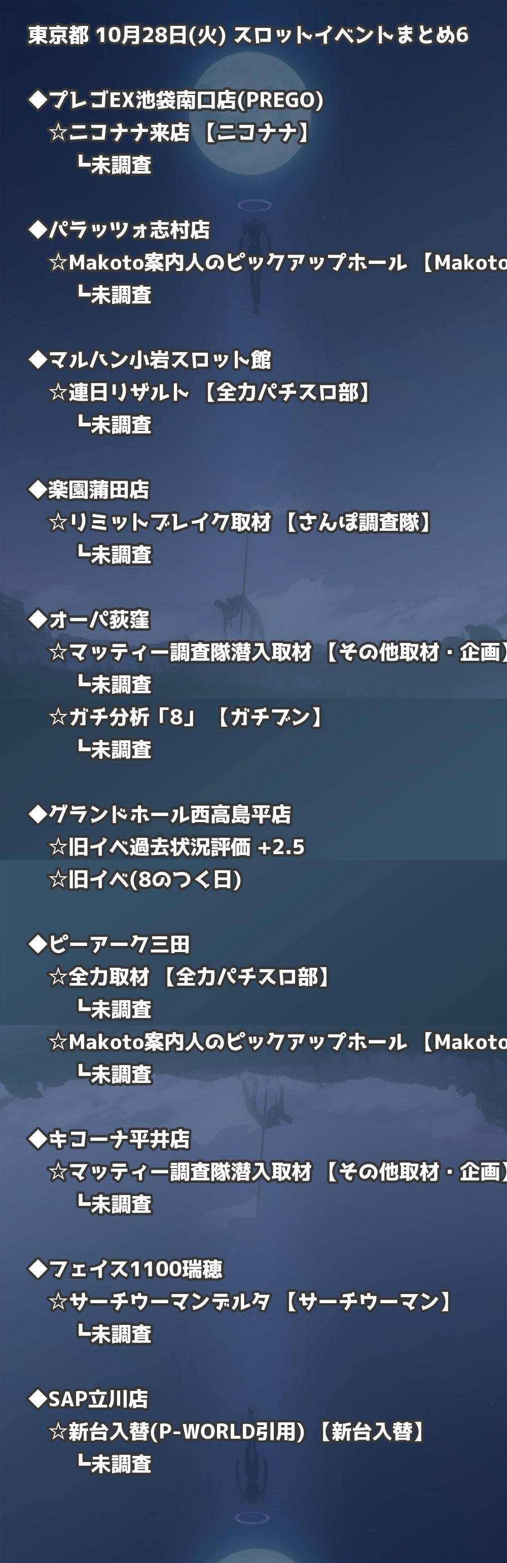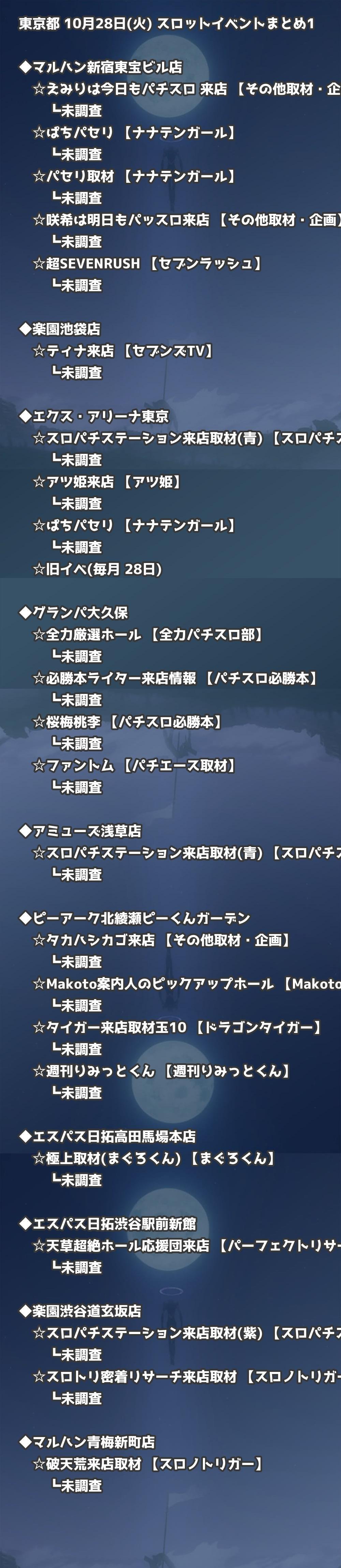 📊 東京都 10月28日(火) 勝てるパチンコ・スロット取材店舗一覧|おすすめ順
