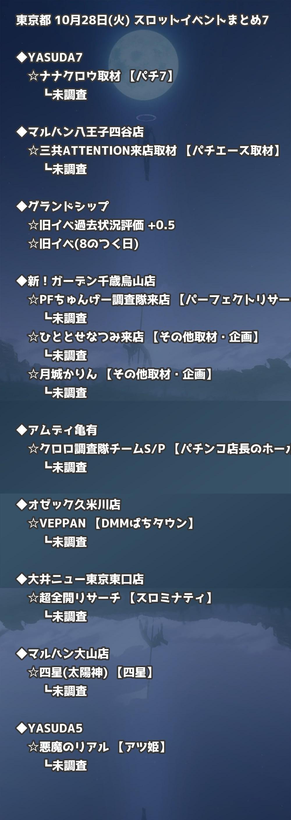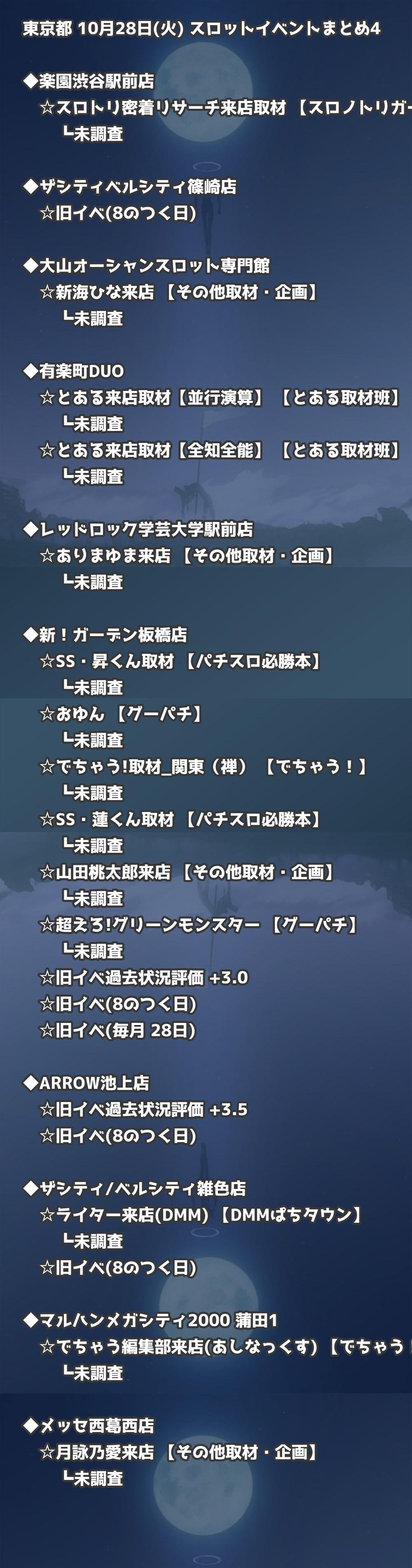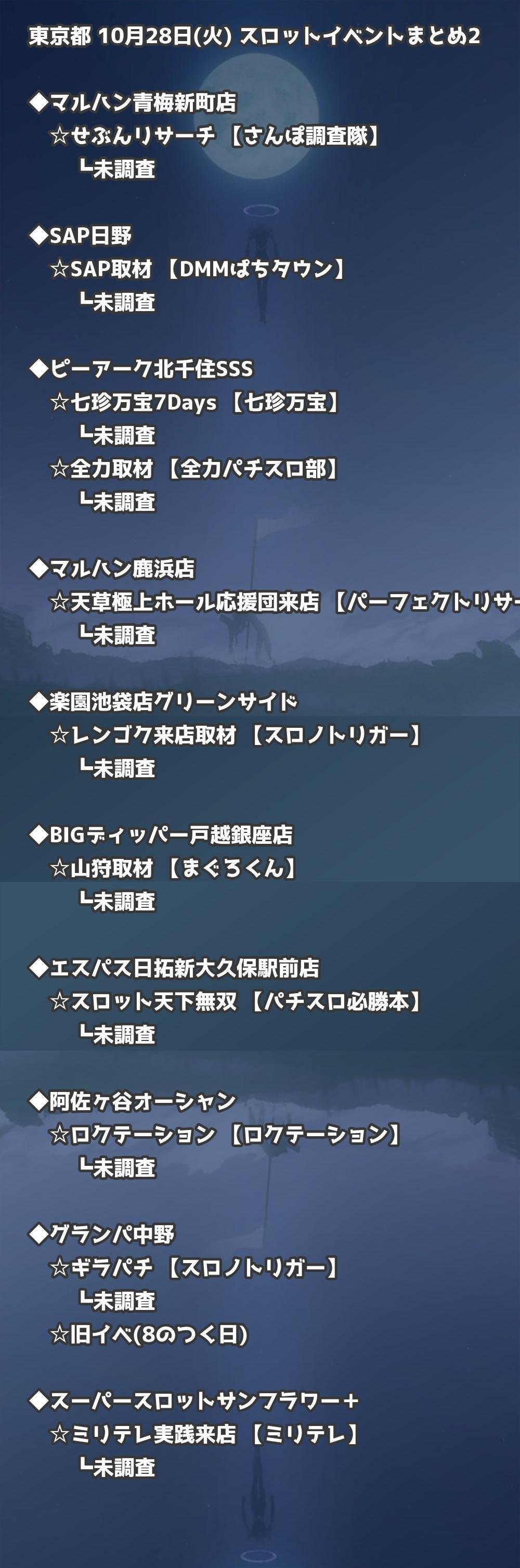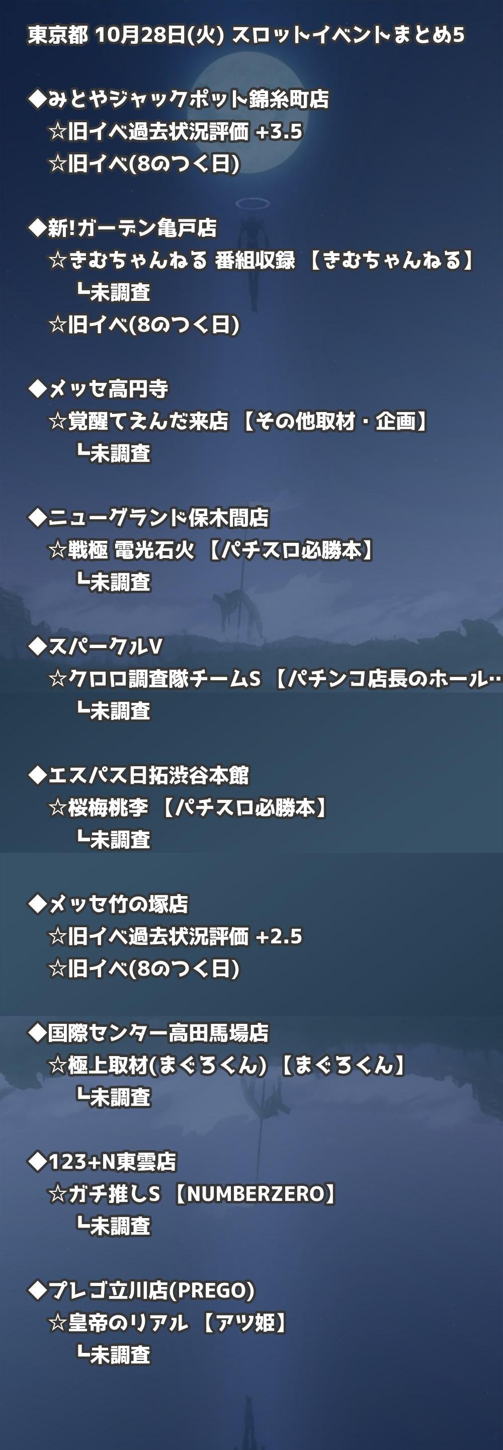 📊 東京都 10月28日(火) 勝てるパチンコ・スロット取材店舗一覧|おすすめ順