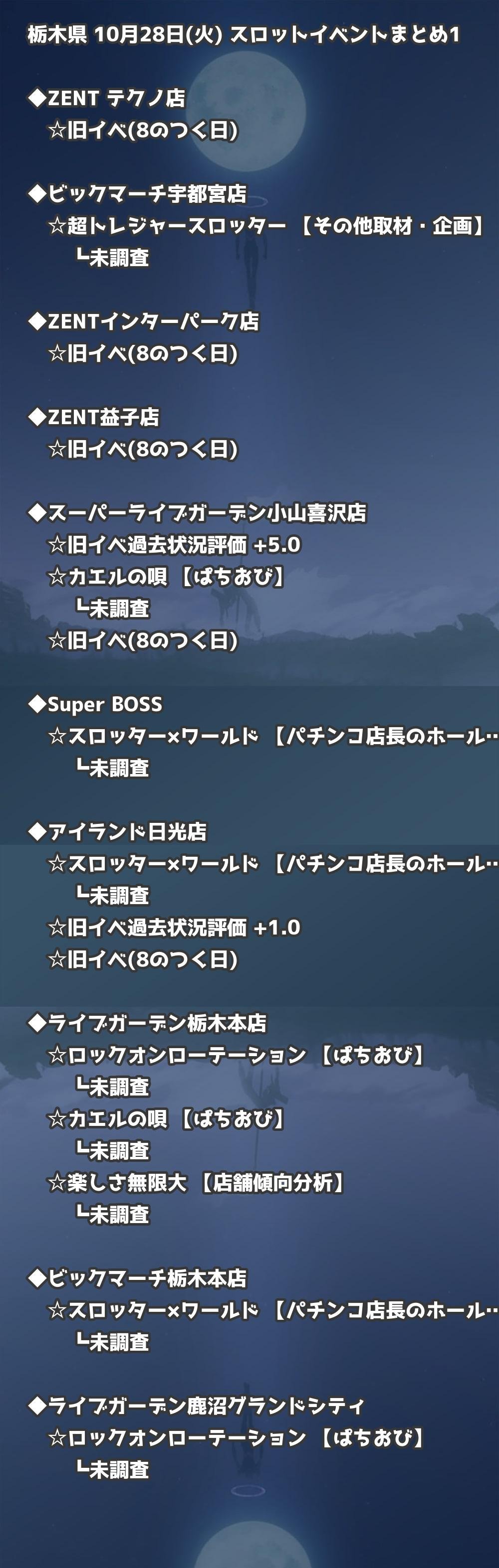 【栃木県】10月28日(火) パチンコホールイベント取材まとめ記事です。