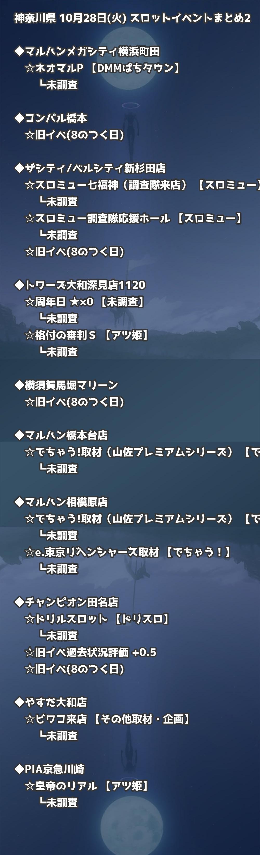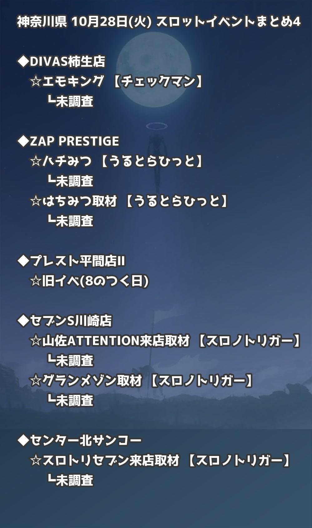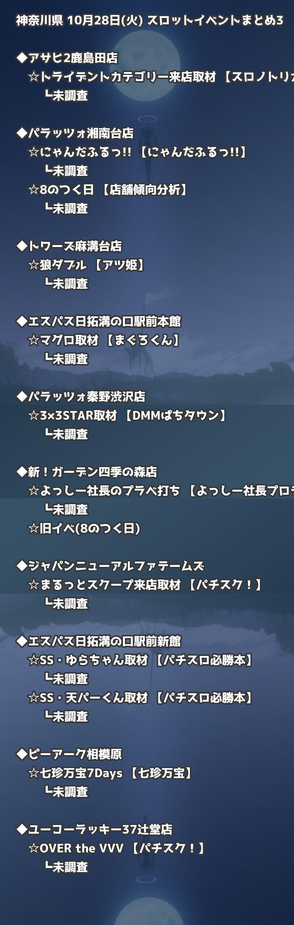 📊 神奈川県 10月28日(火) 勝てるパチンコ・スロット取材店舗一覧|おすすめ順