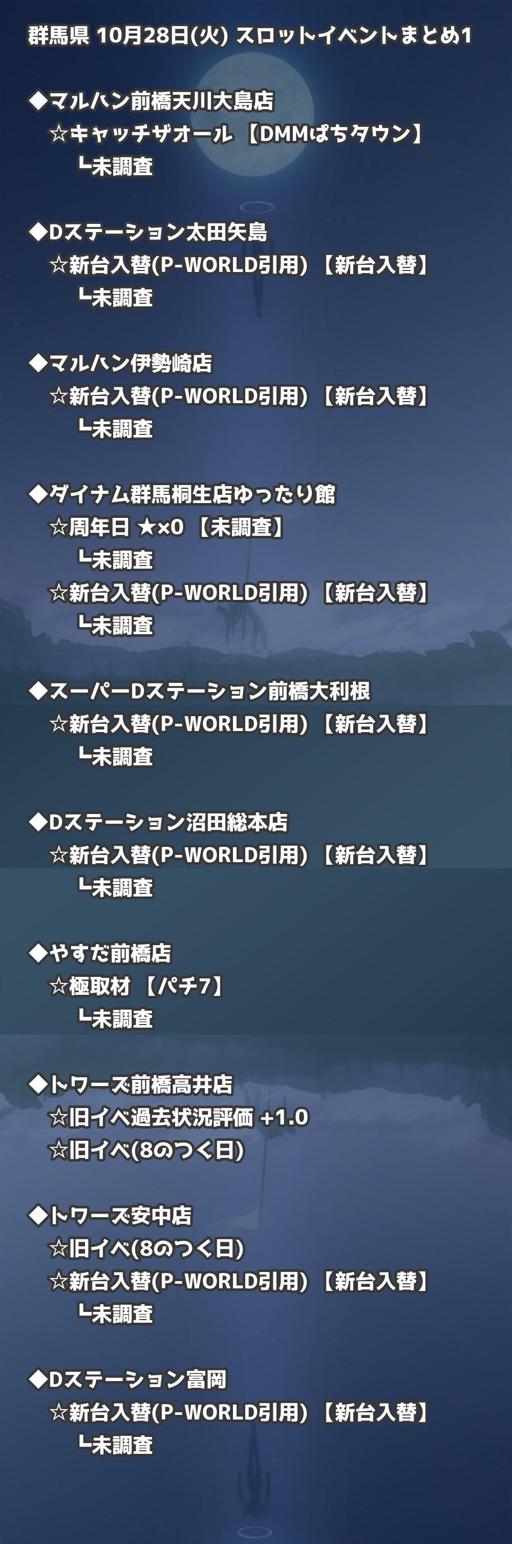 【群馬県】10月28日(火) パチンコホールイベント取材まとめ記事です。