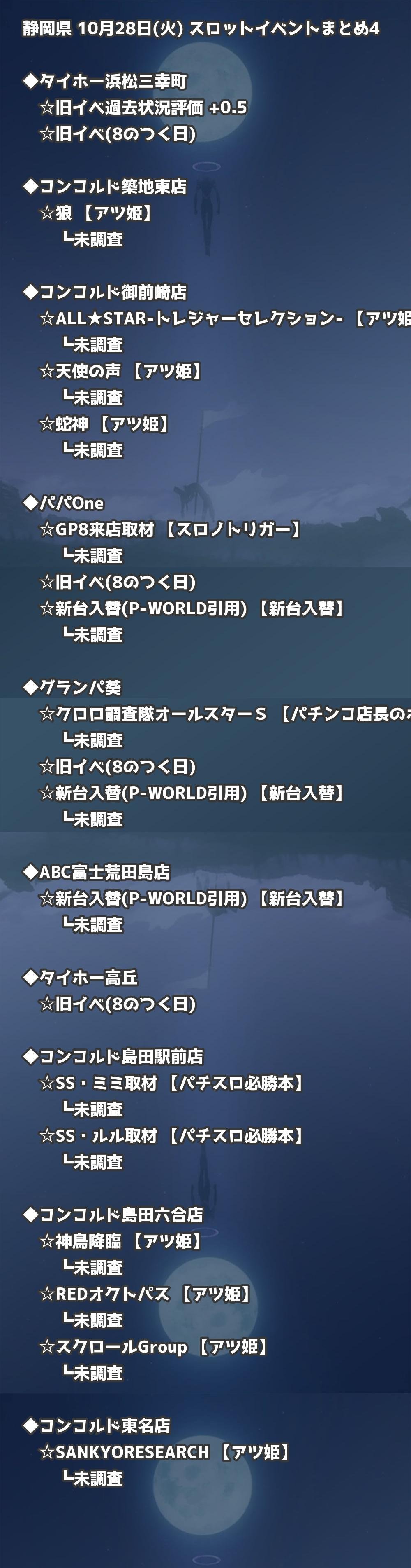 📊 静岡県 10月28日(火) 勝てるパチンコ・スロット取材店舗一覧|おすすめ順