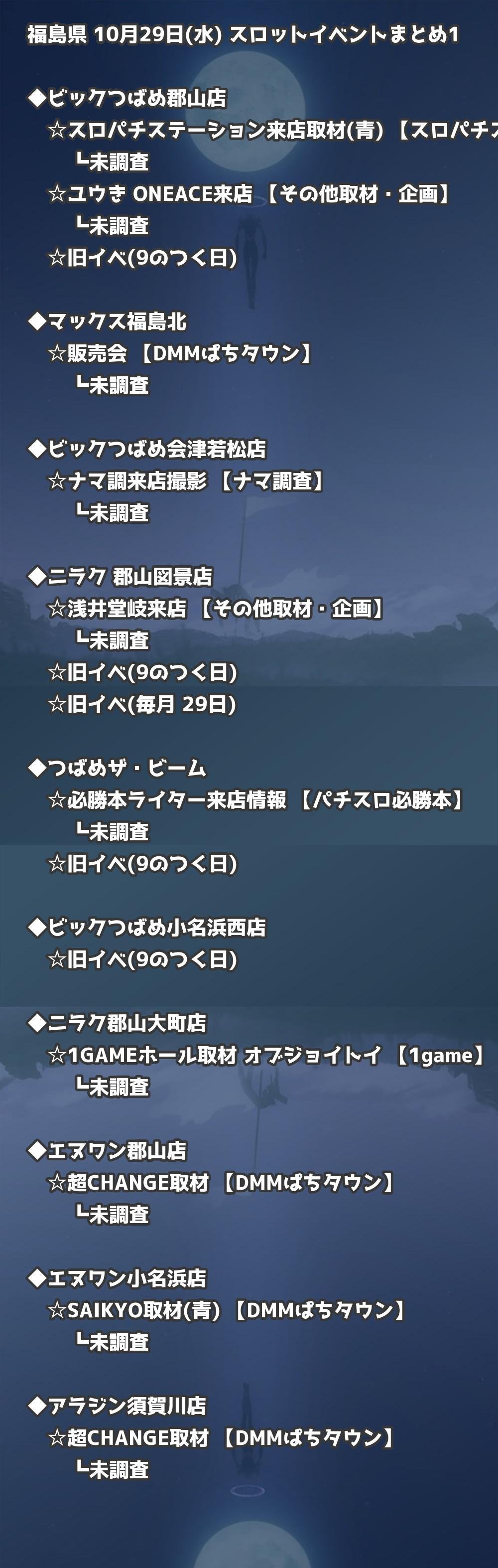 【福島県】10月29日(水) パチンコホールイベント取材まとめ記事です。