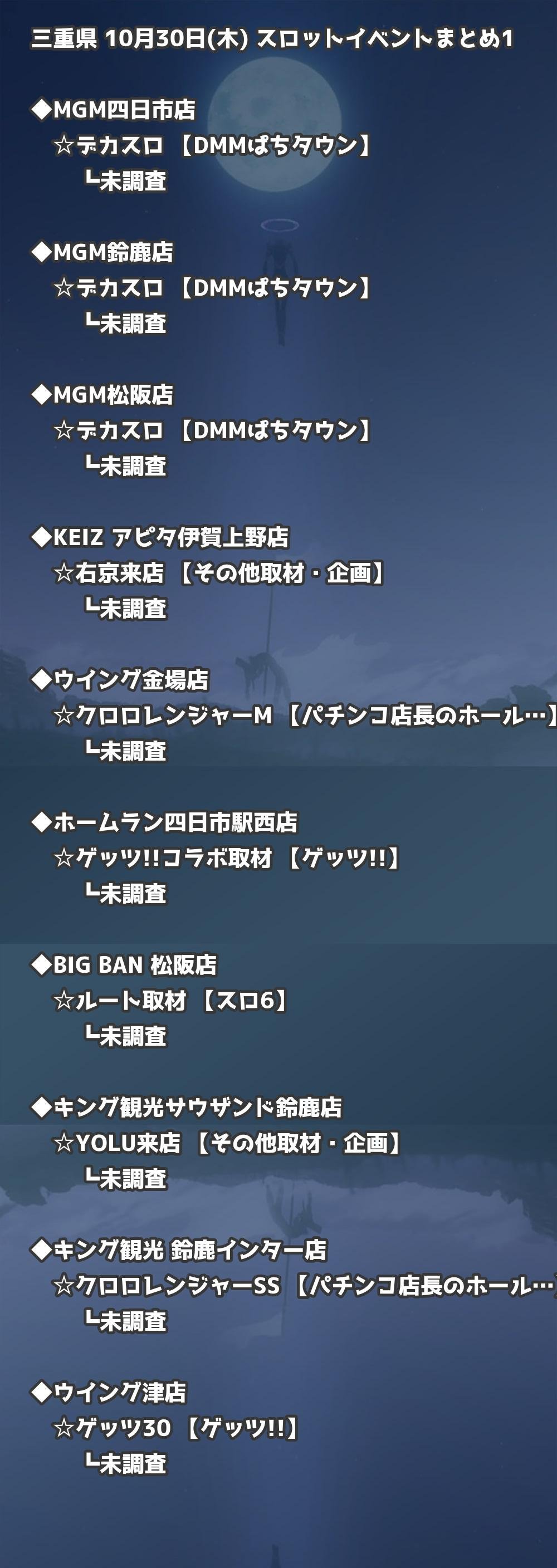 【三重県】10月30日(木) パチンコホールイベント取材まとめ記事です。