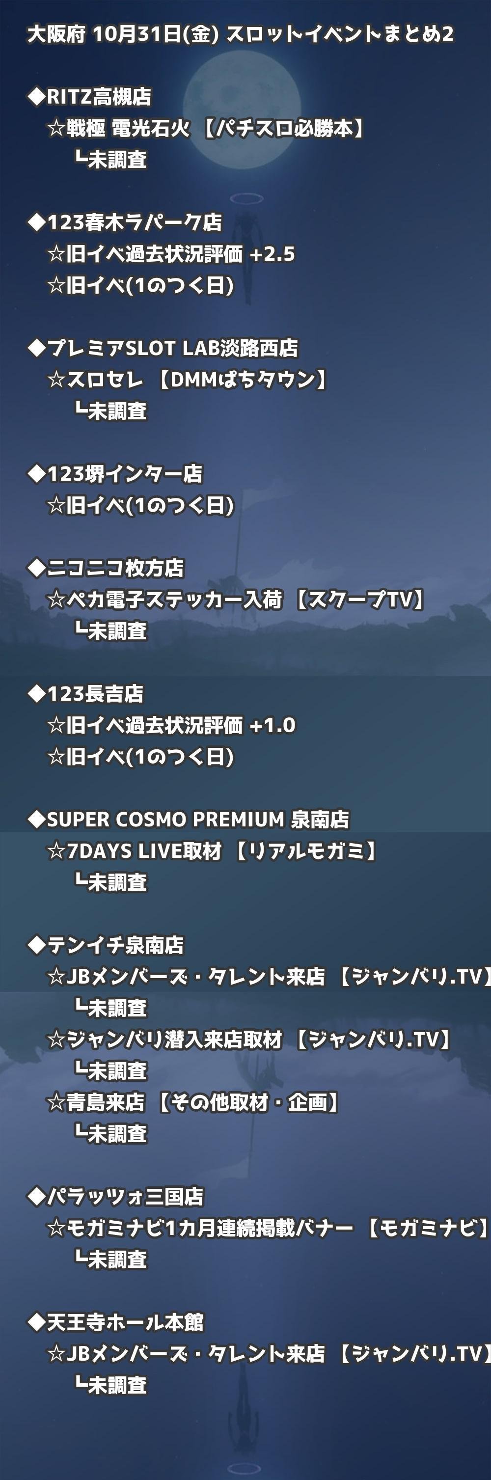 📊 大阪府 10月31日(金) 勝てるパチンコ・スロット取材店舗一覧|おすすめ順