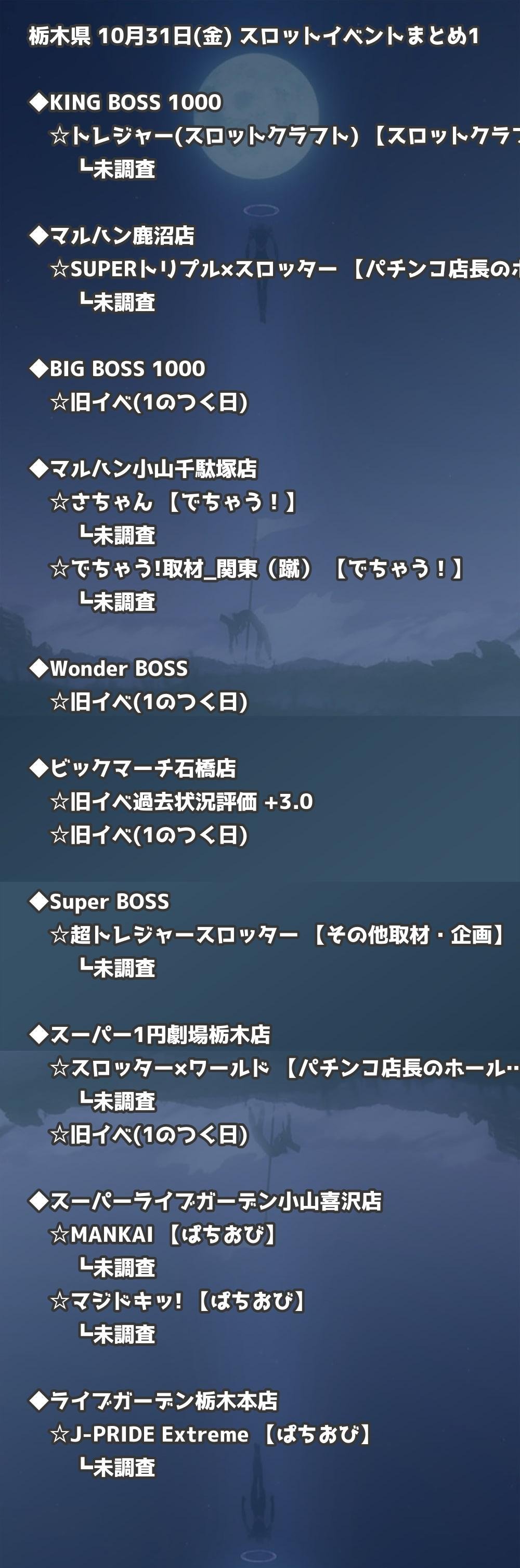 【栃木県】10月31日(金) パチンコホールイベント取材まとめ記事です。