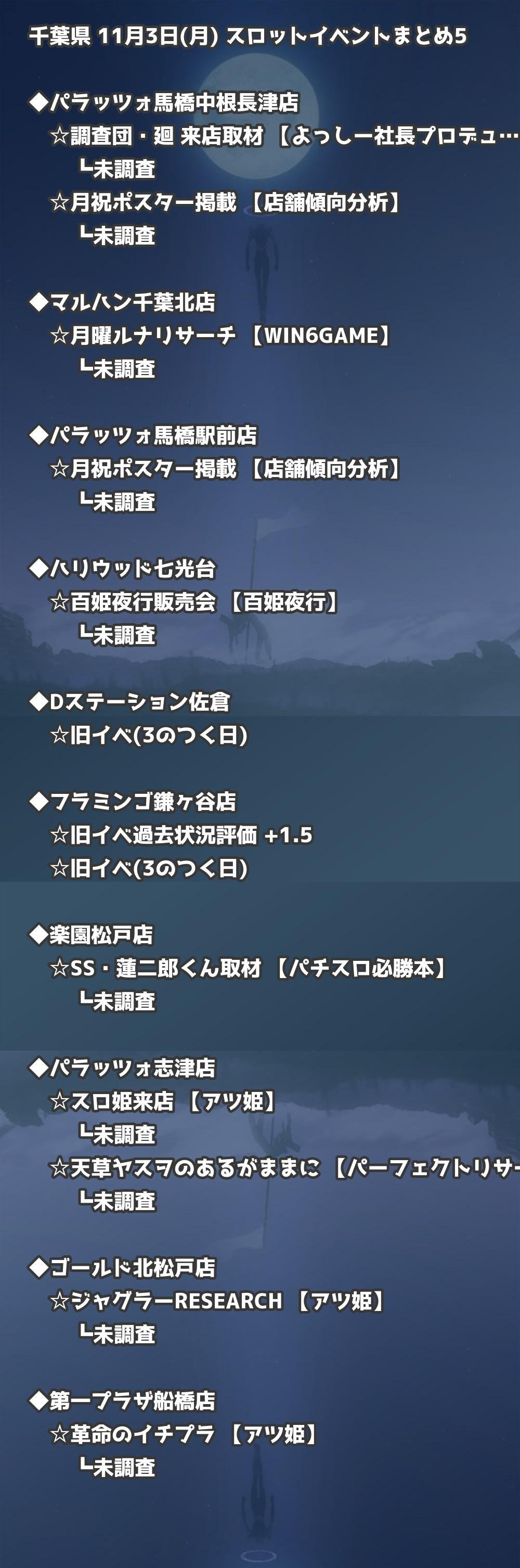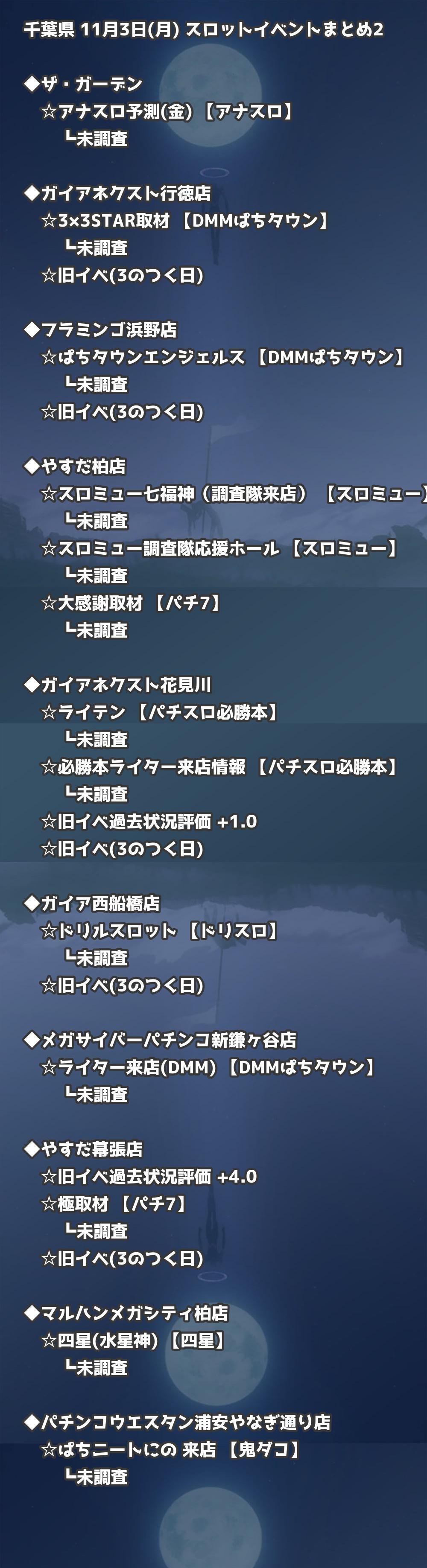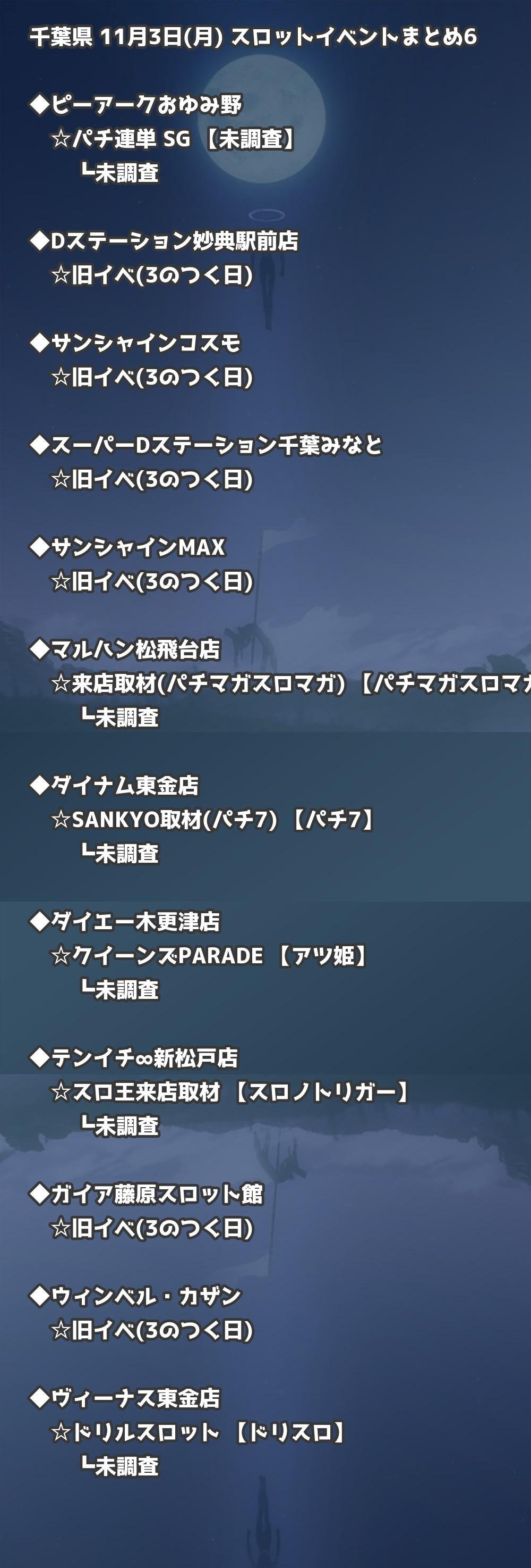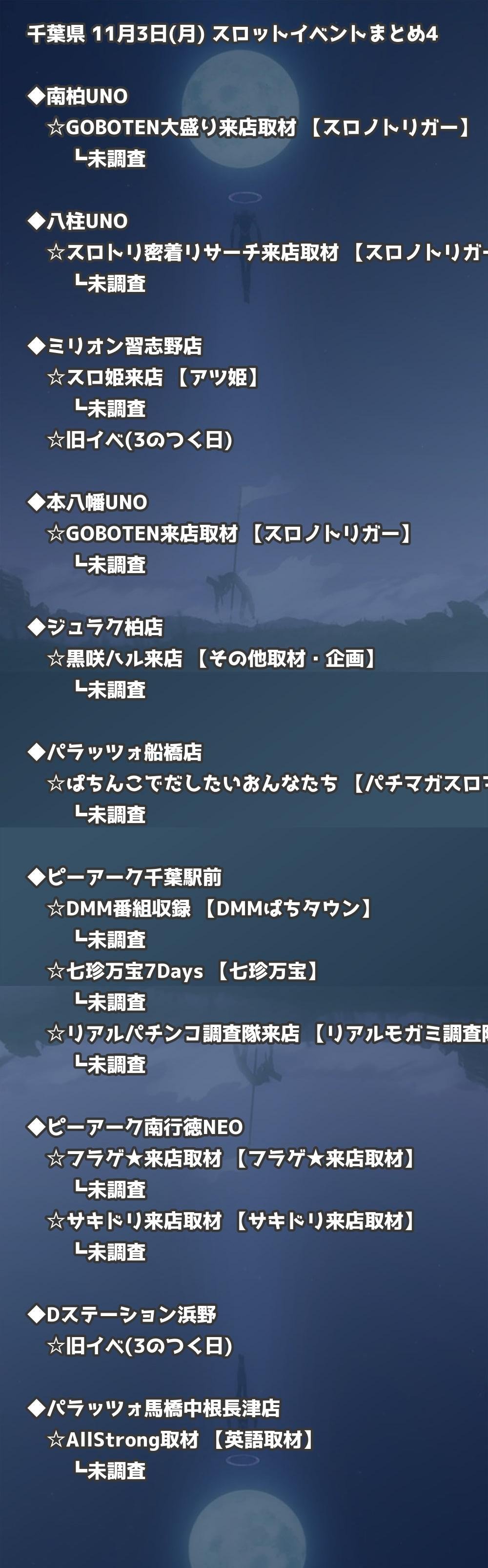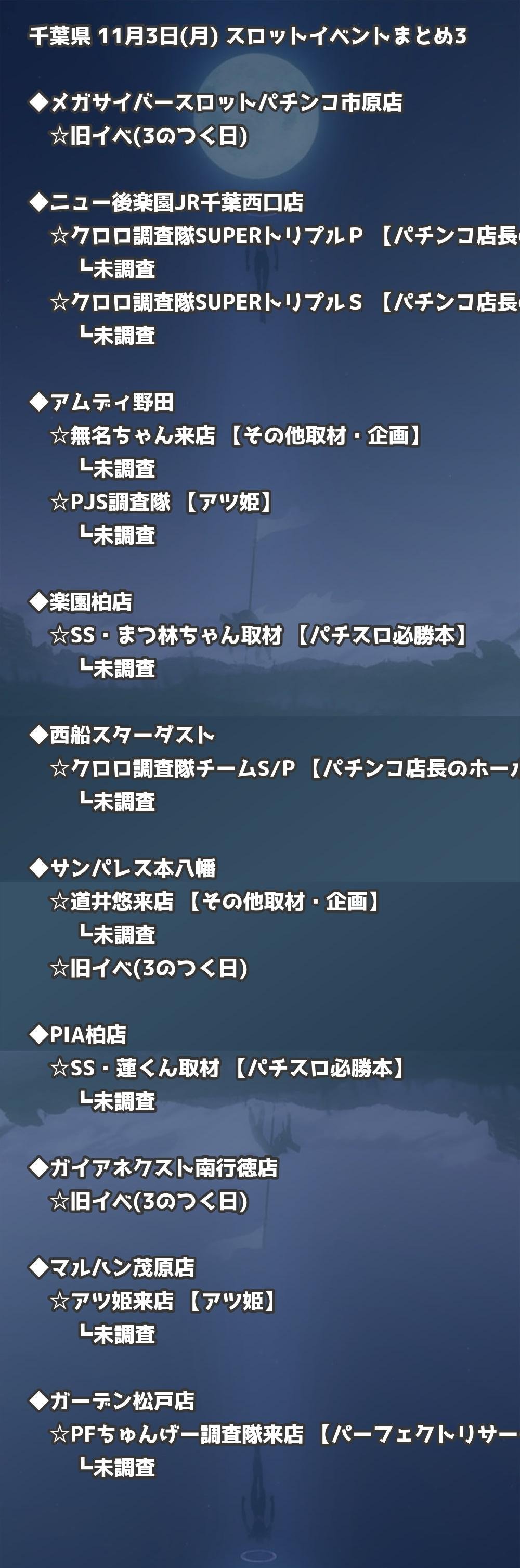 📊 千葉県 11月3日(月) 勝てるパチンコ・スロット取材店舗一覧|おすすめ順