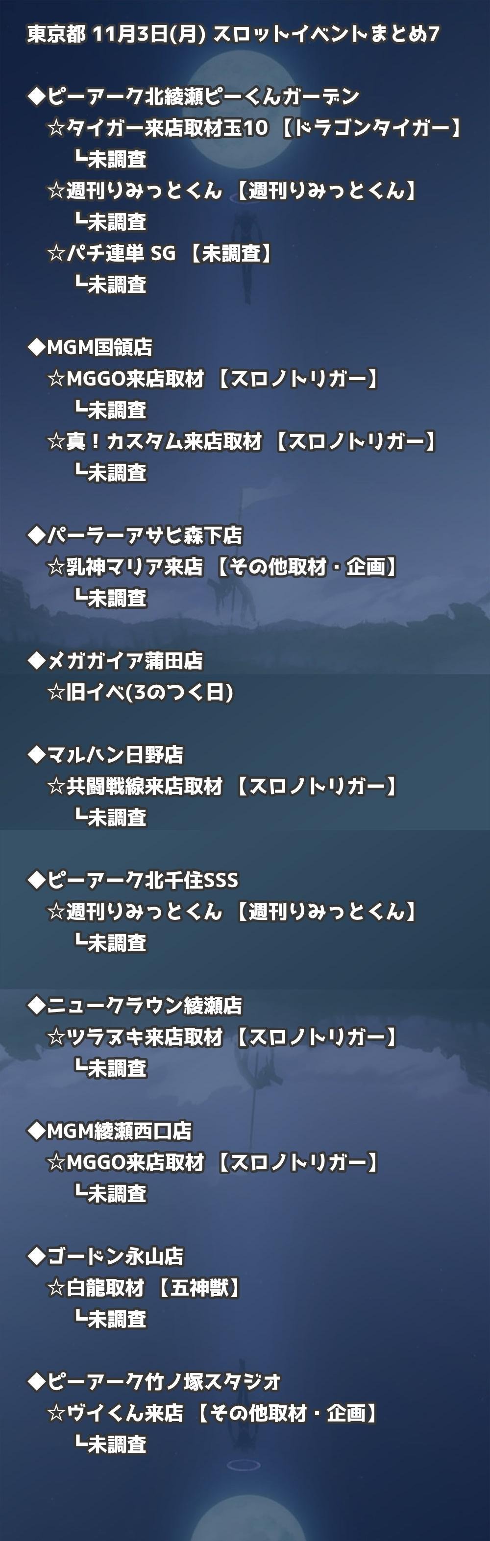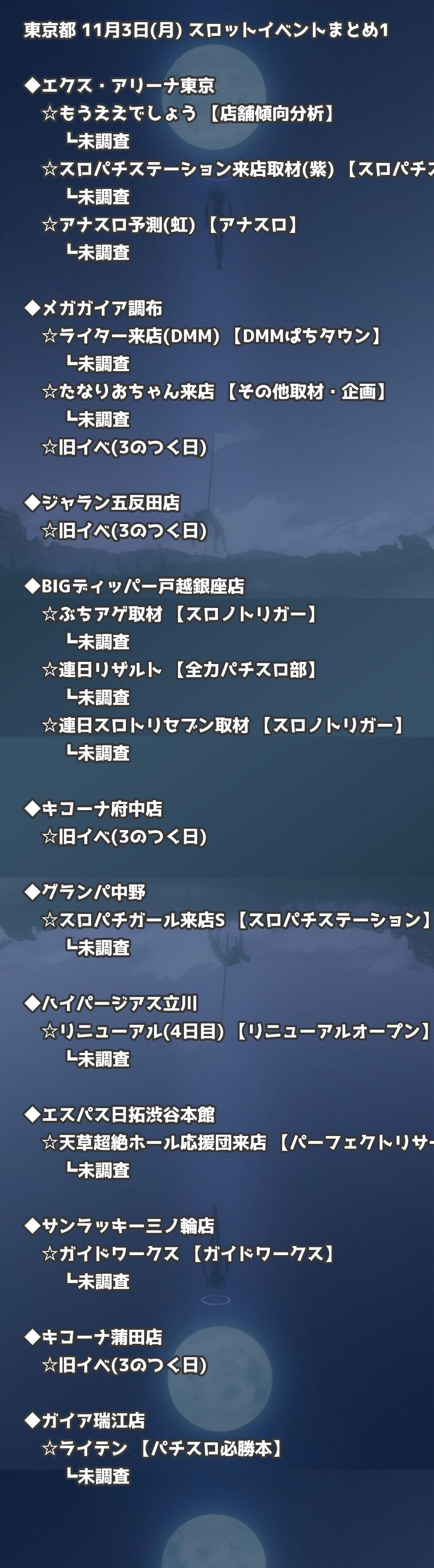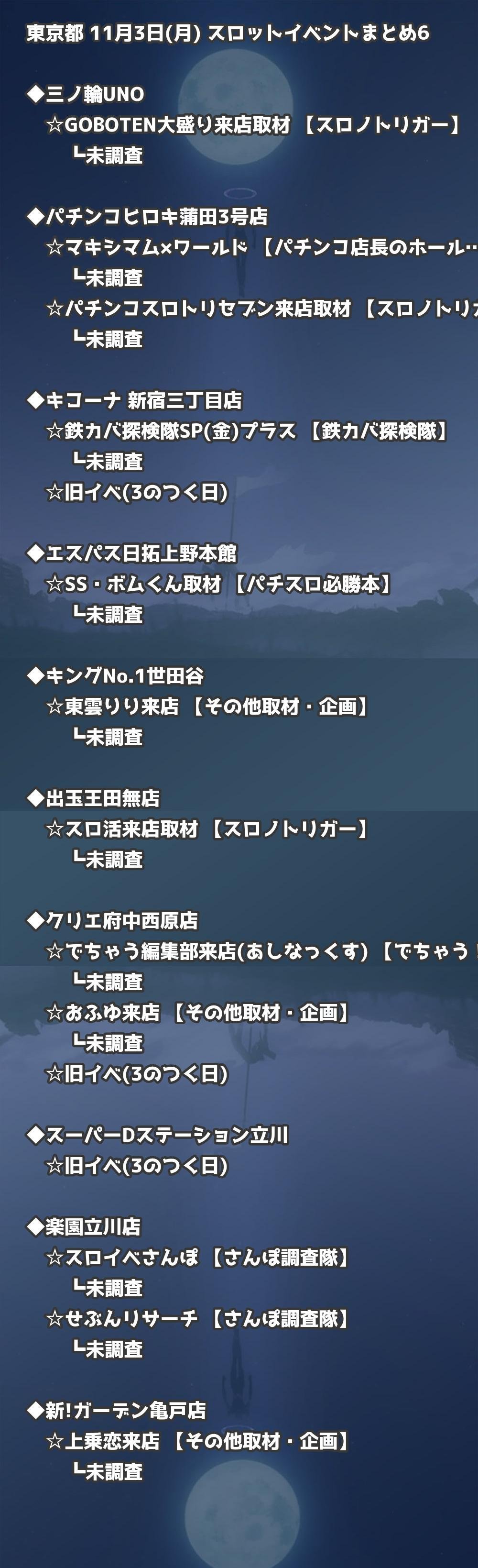 【東京都】11月3日(月) パチンコホールイベント取材まとめ記事です。