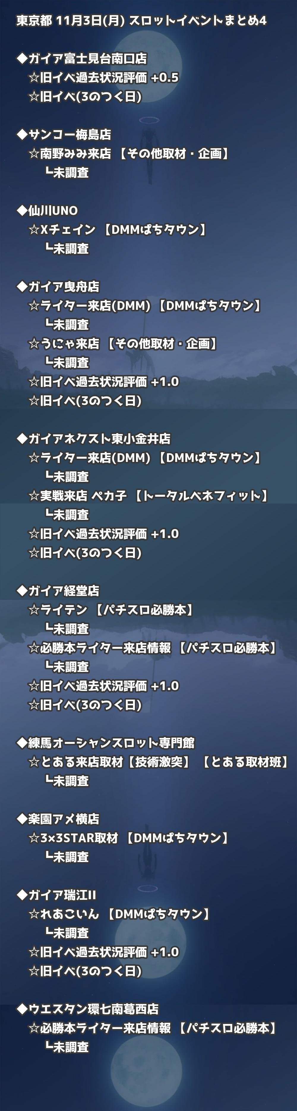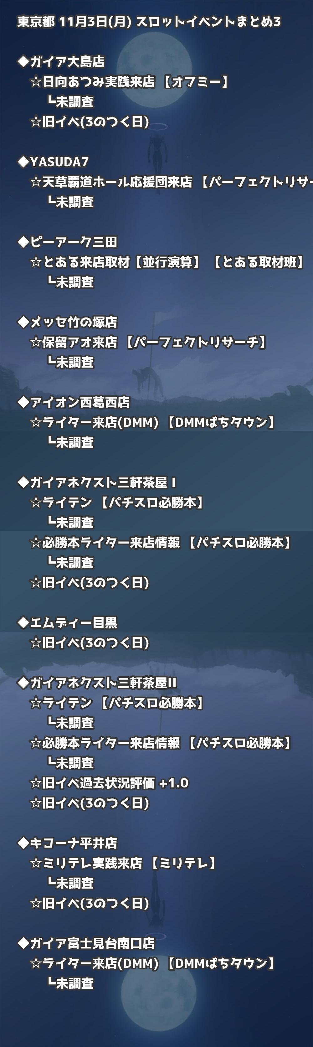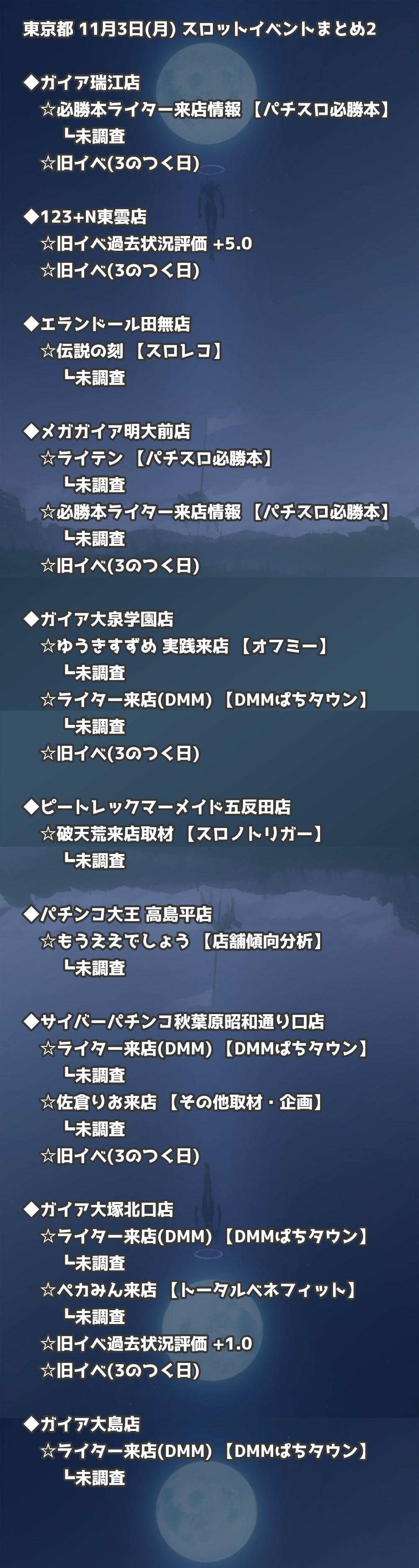 【東京都】11月3日(月) パチンコホールイベント取材まとめ記事です。