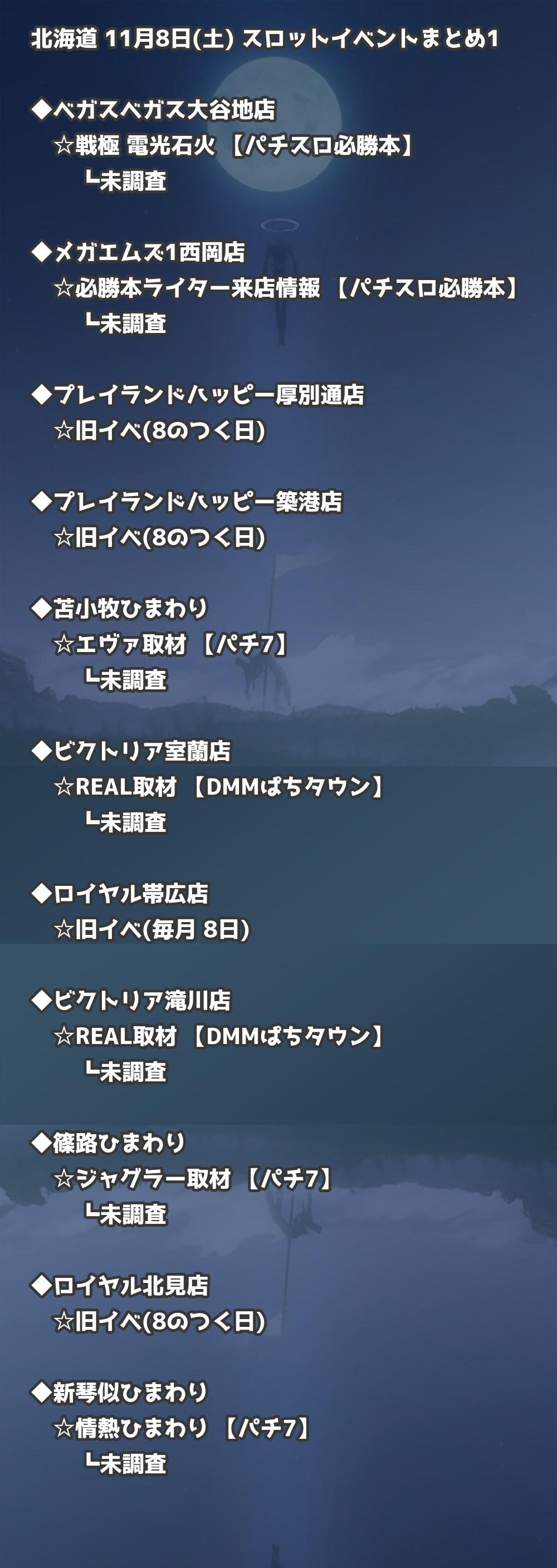【北海道】11月8日(土) パチンコホールイベント取材まとめ記事です。