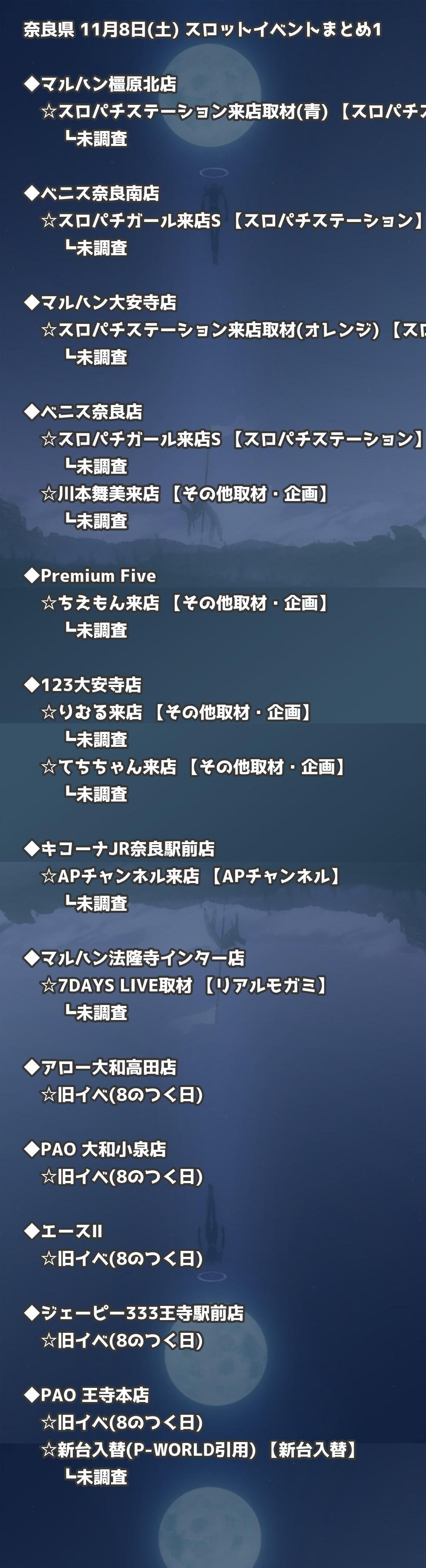 【奈良県】11月8日(土) パチンコホールイベント取材まとめ記事です。