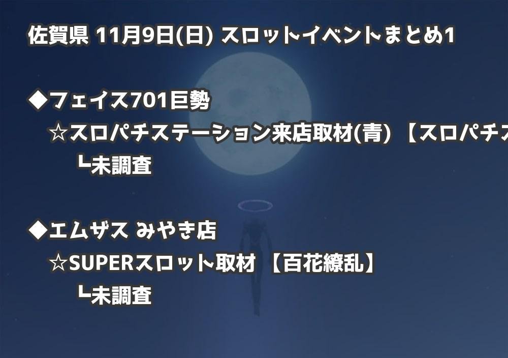 【佐賀県】11月9日(日) パチンコホールイベント取材まとめ記事です。