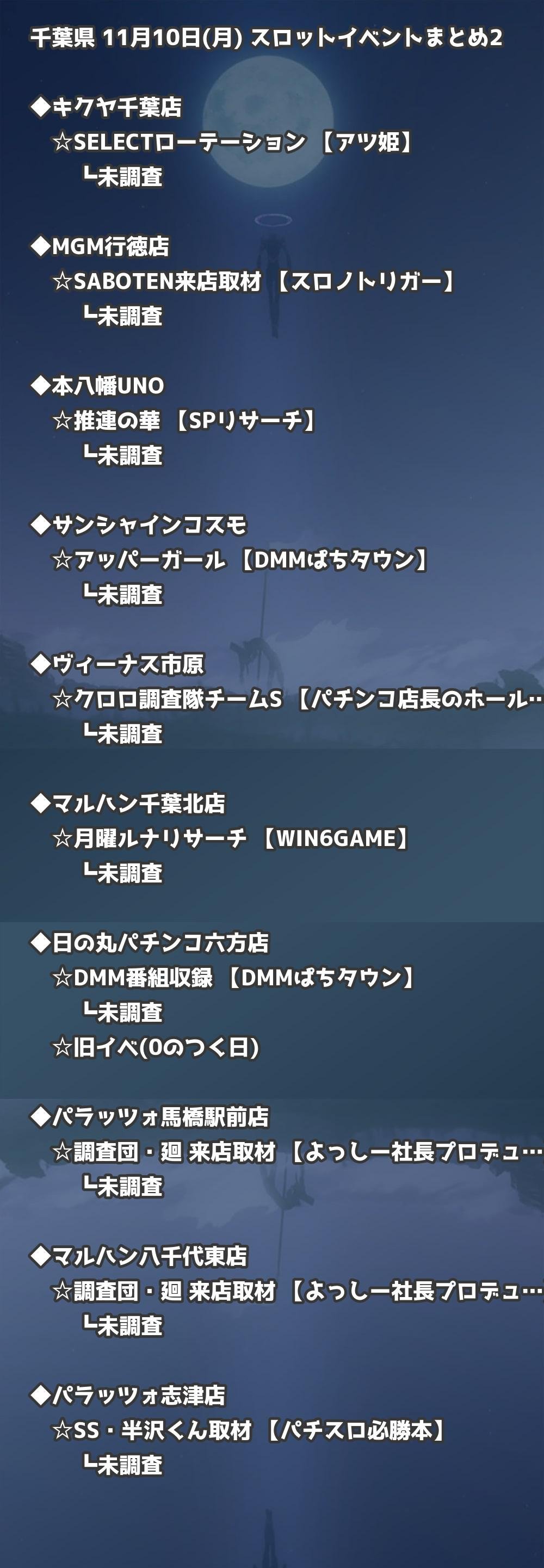 📊 千葉県 11月10日(月) 勝てるパチンコ・スロット取材店舗一覧|おすすめ順