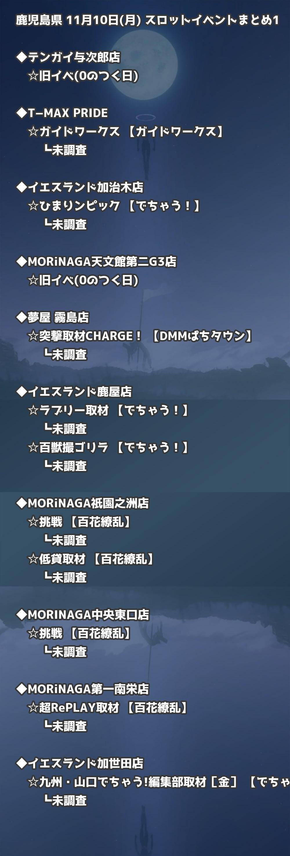 【鹿児島県】11月10日(月) パチンコホールイベント取材まとめ記事です。
