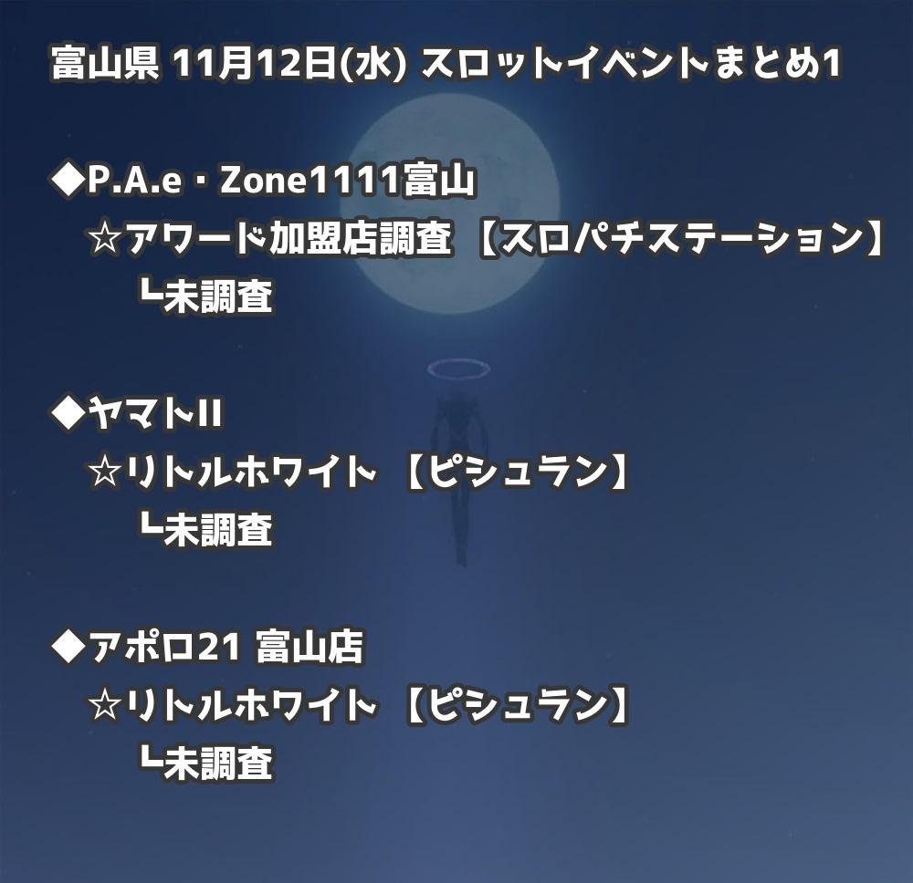 【富山県】11月12日(水) パチンコホールイベント取材まとめ記事です。