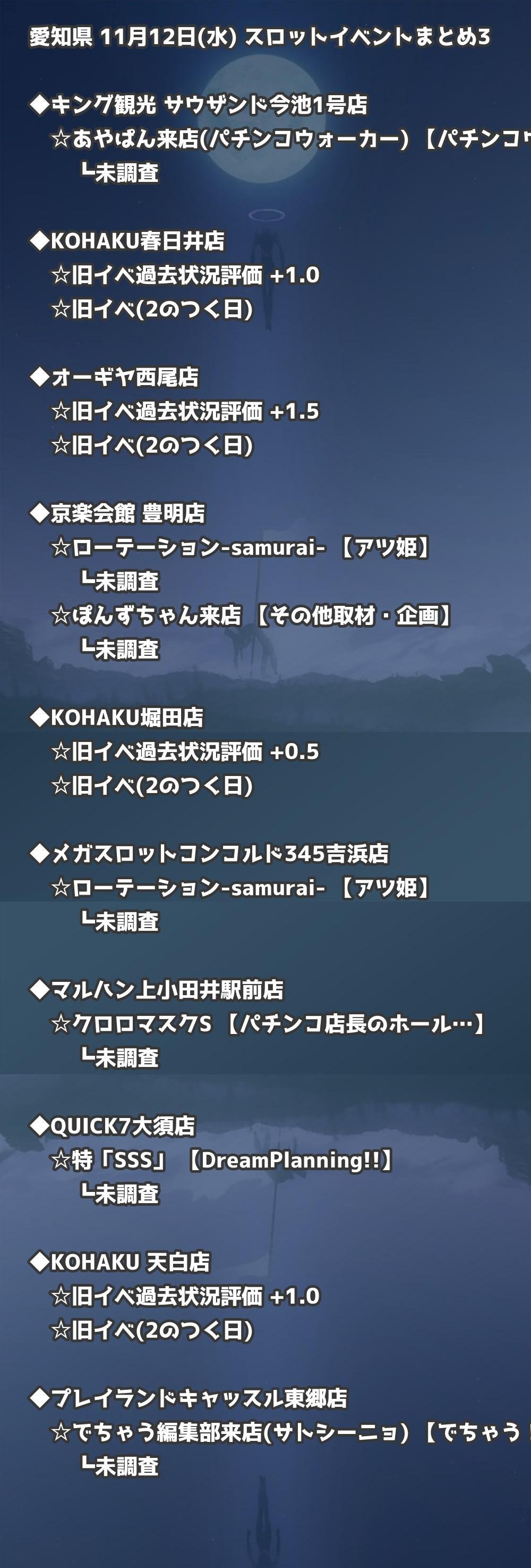 📊 愛知県 11月12日(水) 勝てるパチンコ・スロット取材店舗一覧|おすすめ順