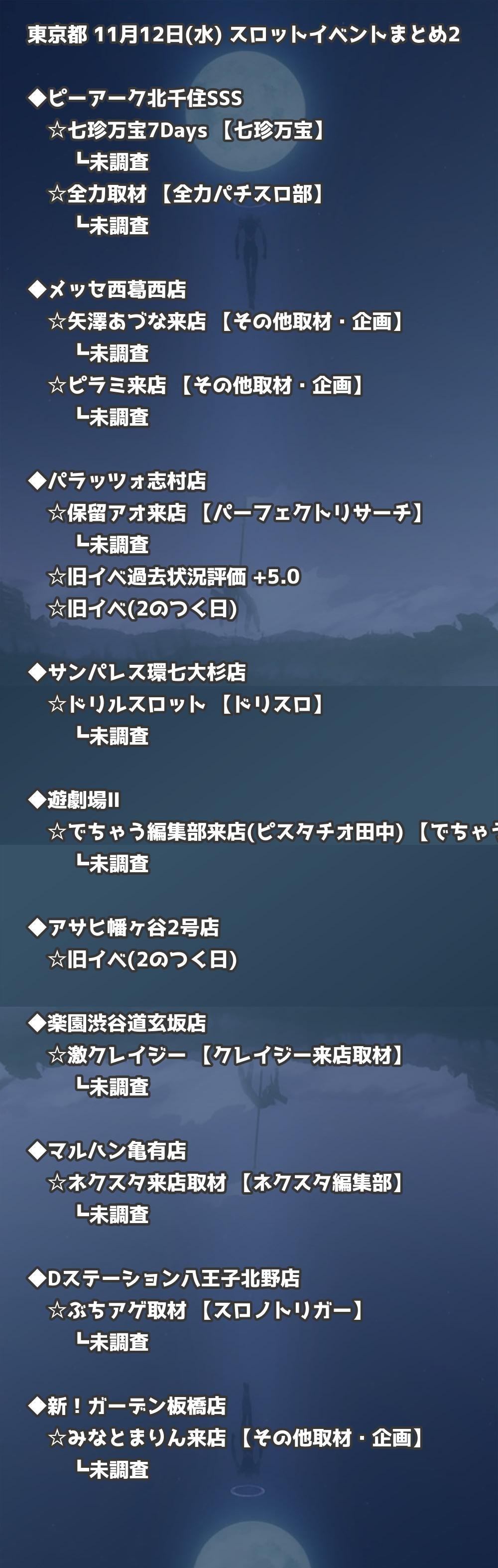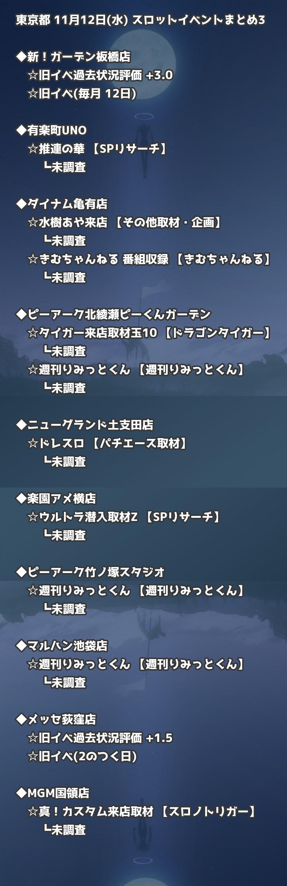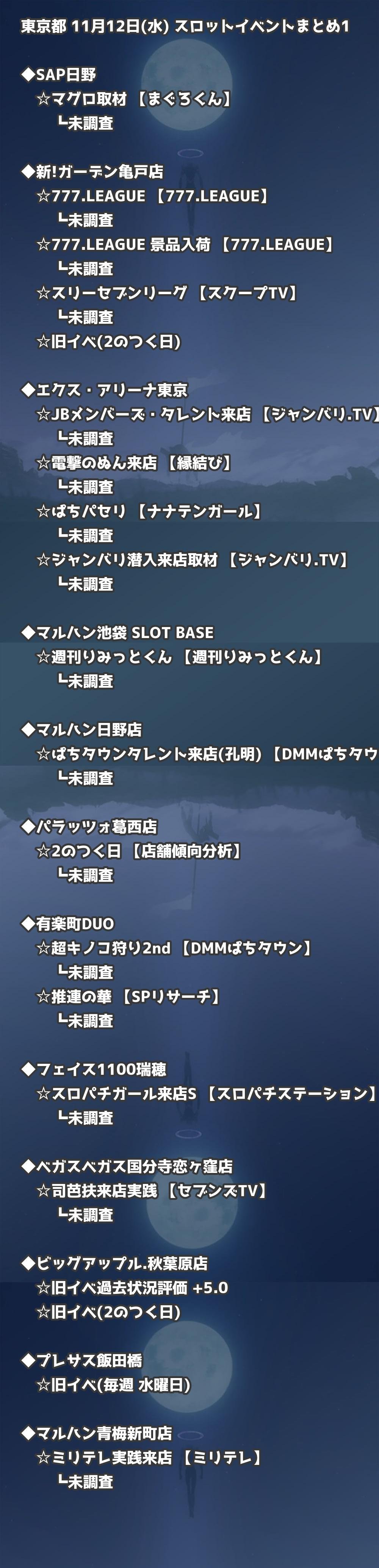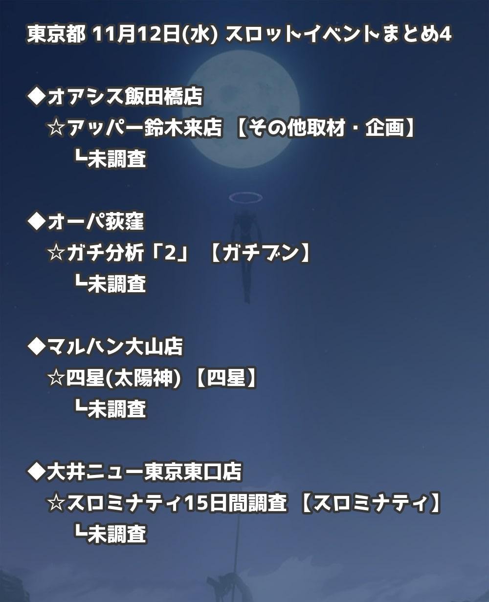 【東京都】11月12日(水) パチンコホールイベント取材まとめ記事です。