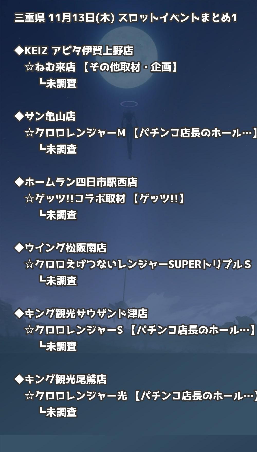 【三重県】11月13日(木) パチンコホールイベント取材まとめ記事です。