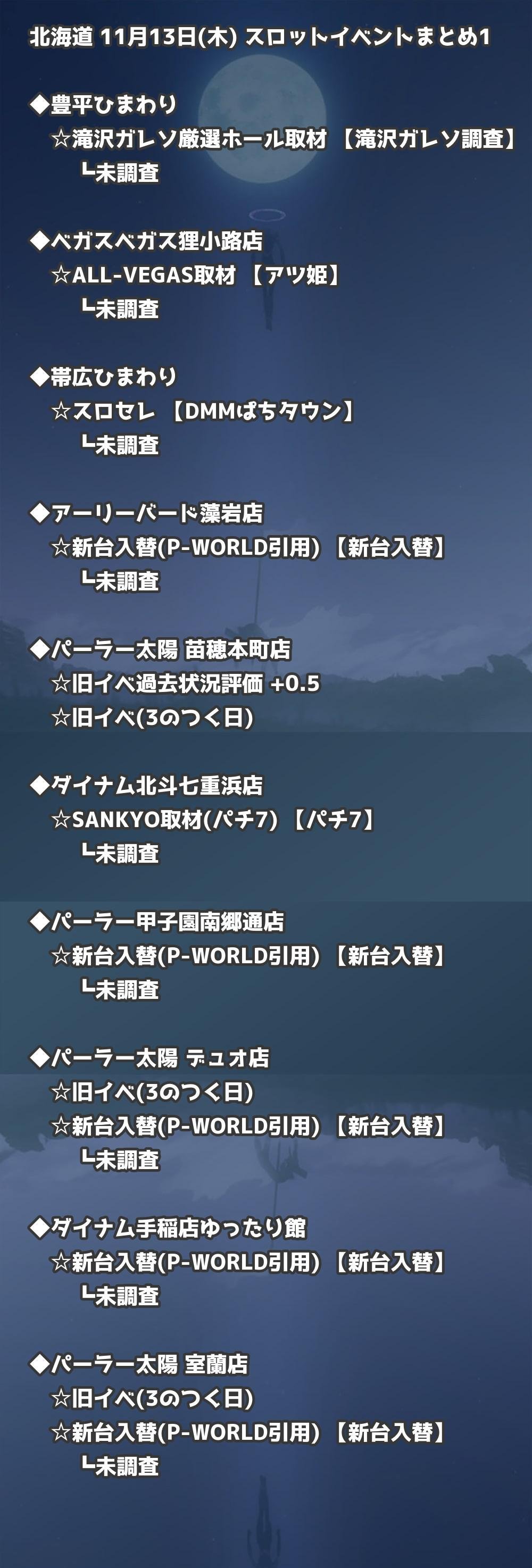 【北海道】11月13日(木) パチンコホールイベント取材まとめ記事です。
