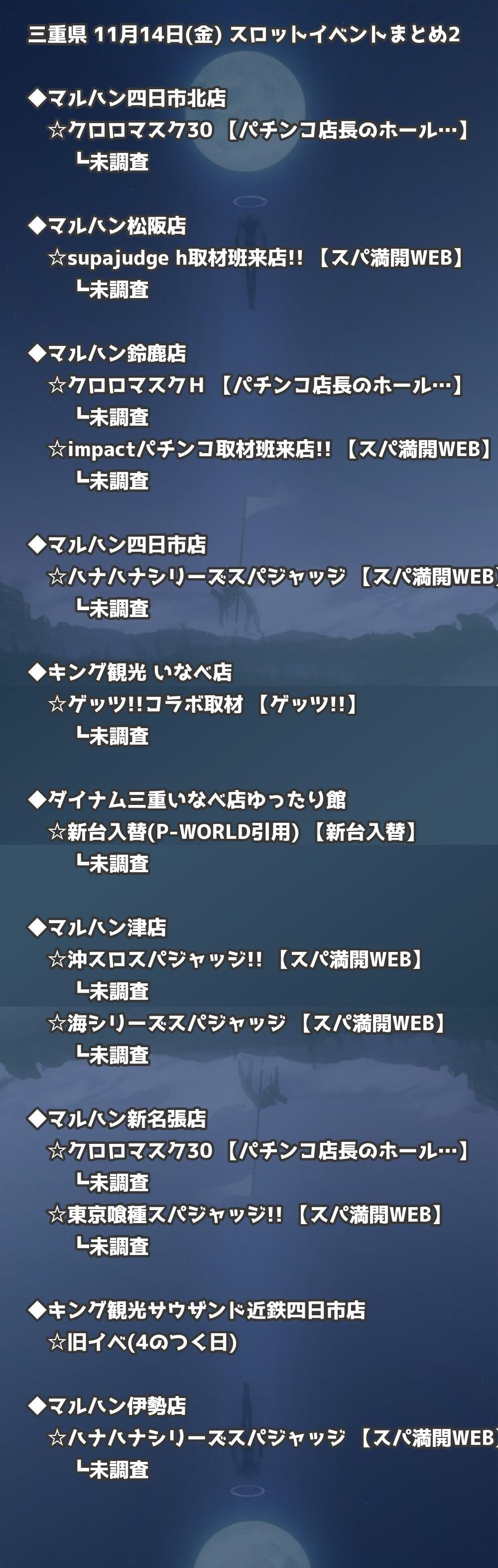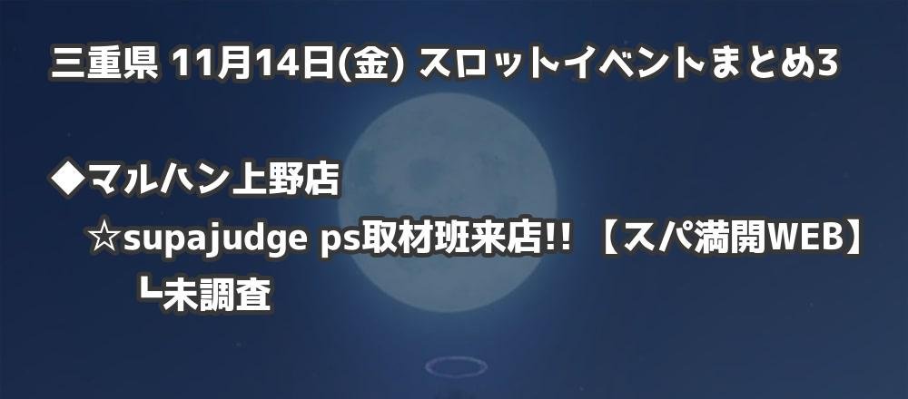 【三重県】11月14日(金) パチンコホールイベント取材まとめ記事です。