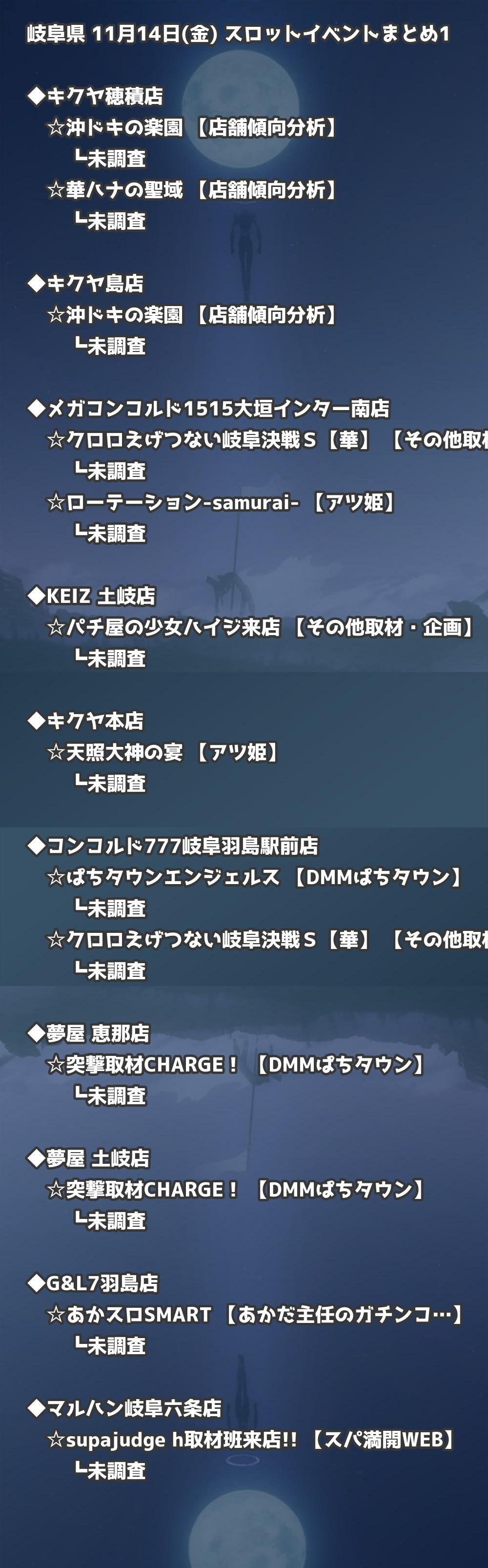 岐阜 11月14日(金) パチンコ取材|岐阜・大垣・多治見情報まとめ