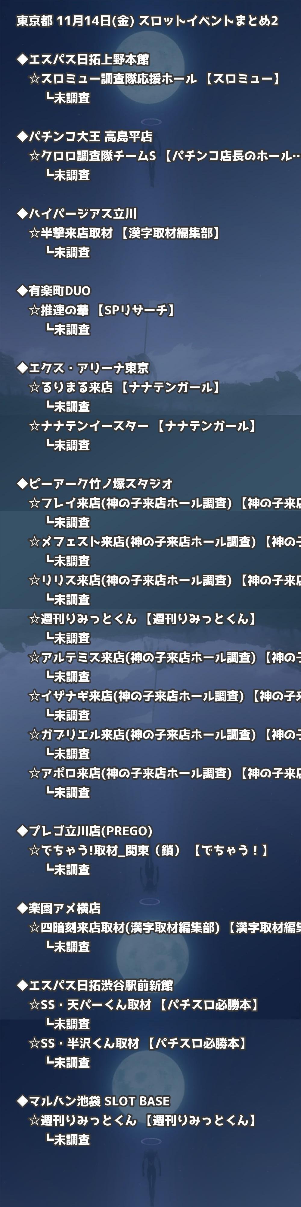 【東京都】11月14日(金) パチンコホールイベント取材まとめ記事です。