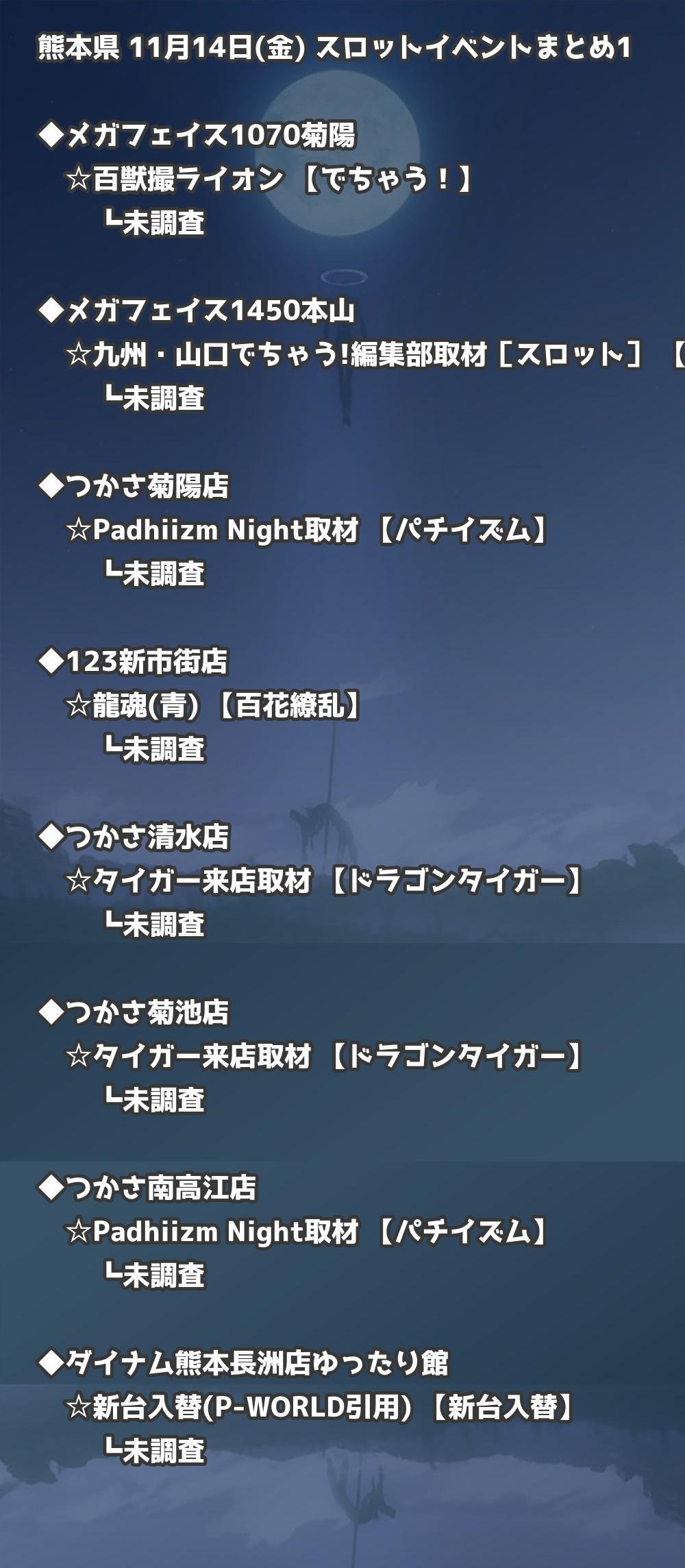 【熊本県】11月14日(金) パチンコホールイベント取材まとめ記事です。