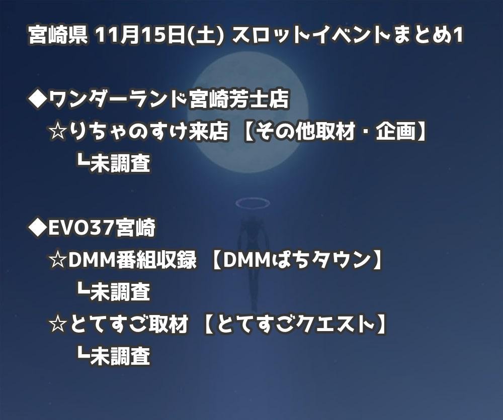 【宮崎県】11月15日(土) パチンコホールイベント取材まとめ記事です。