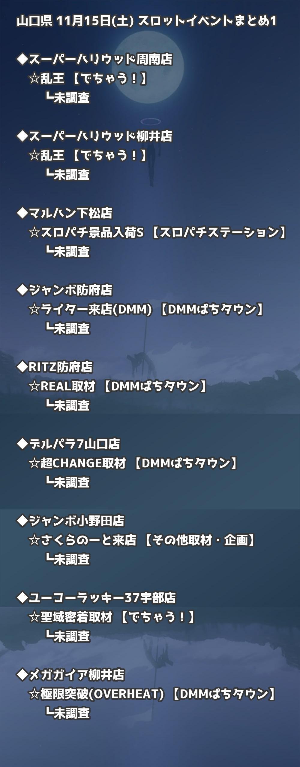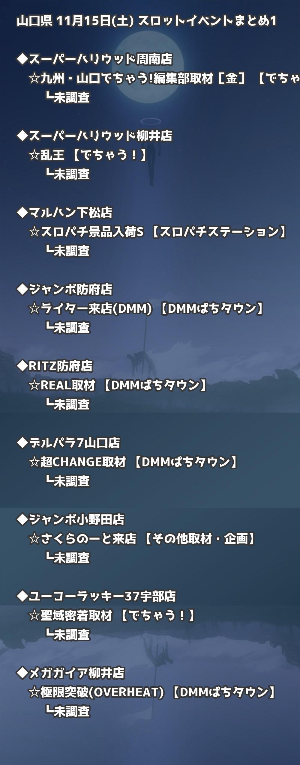 📊 山口県 11月15日(土) 勝てるパチンコ・スロット取材店舗一覧|おすすめ順