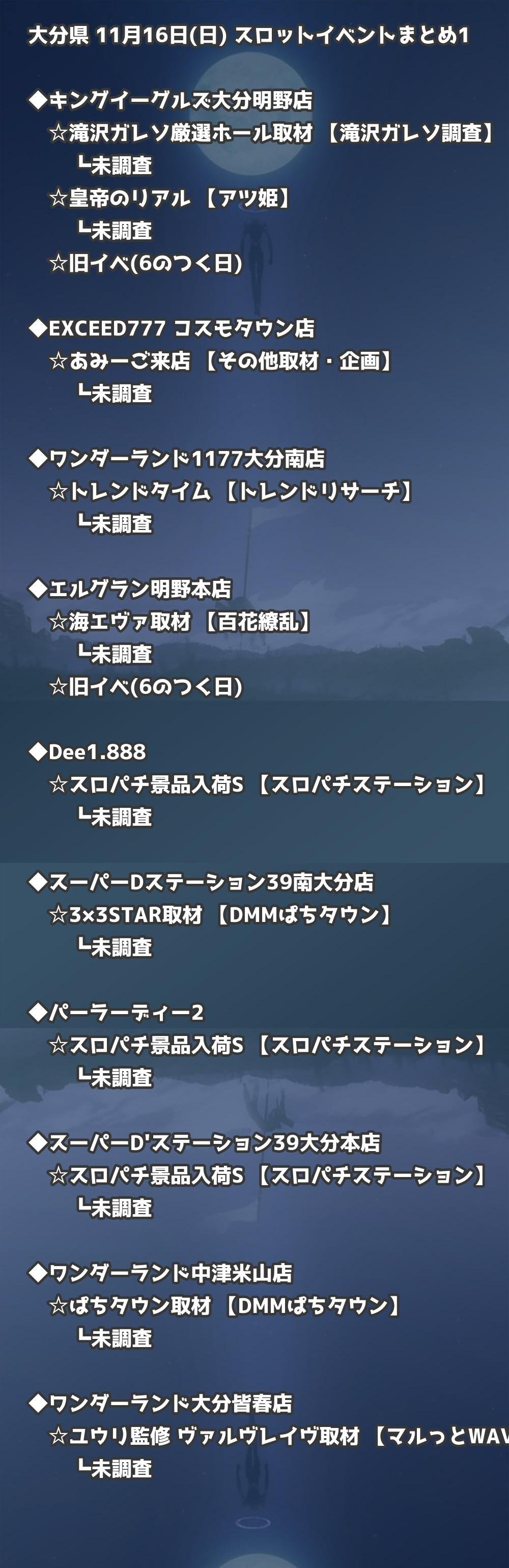 【大分県】11月16日(日) パチンコホールイベント取材まとめ記事です。