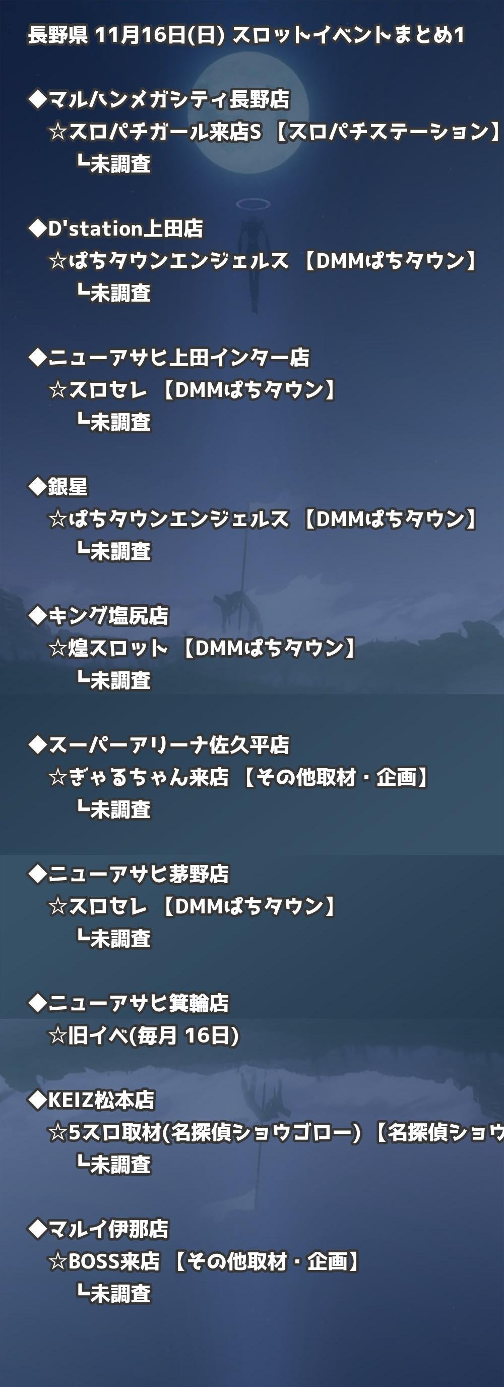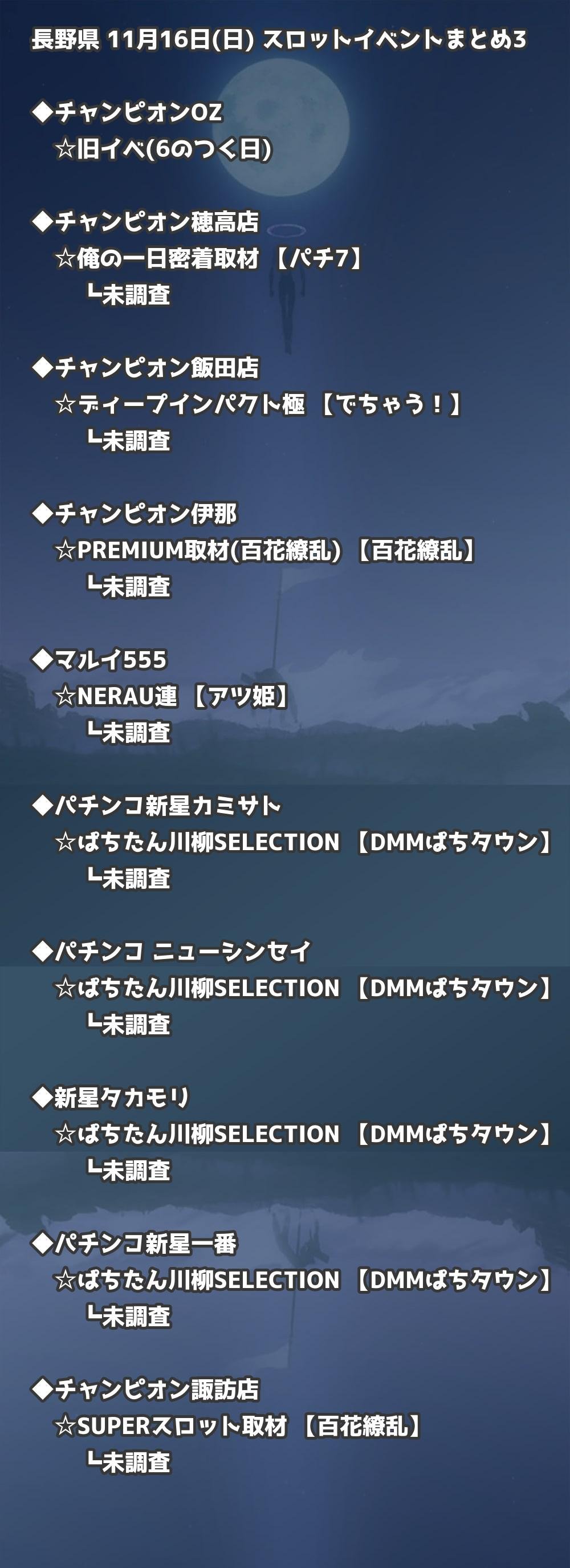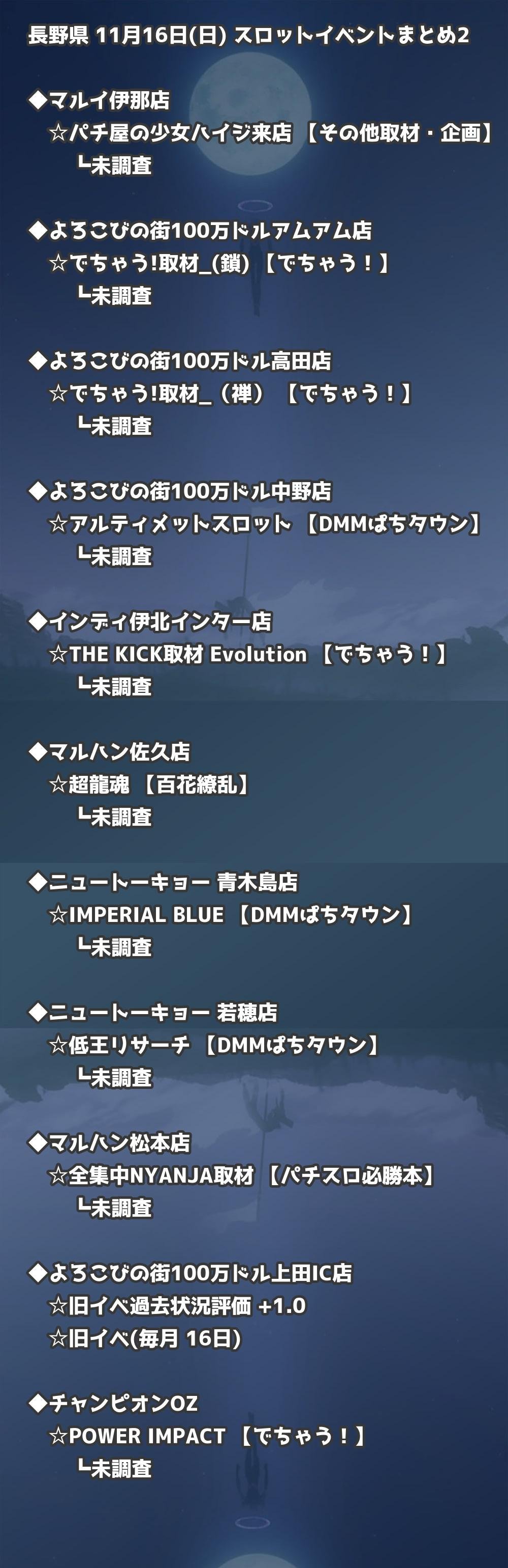 📊 長野県 11月16日(日) 勝てるパチンコ・スロット取材店舗一覧|おすすめ順