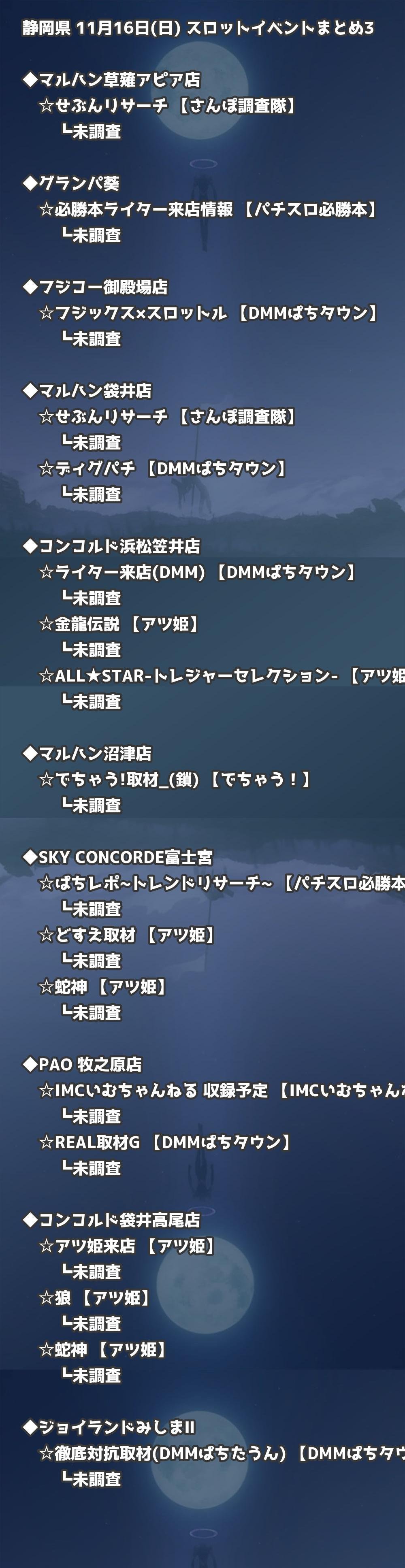 📊 静岡県 11月16日(日) 勝てるパチンコ・スロット取材店舗一覧|おすすめ順