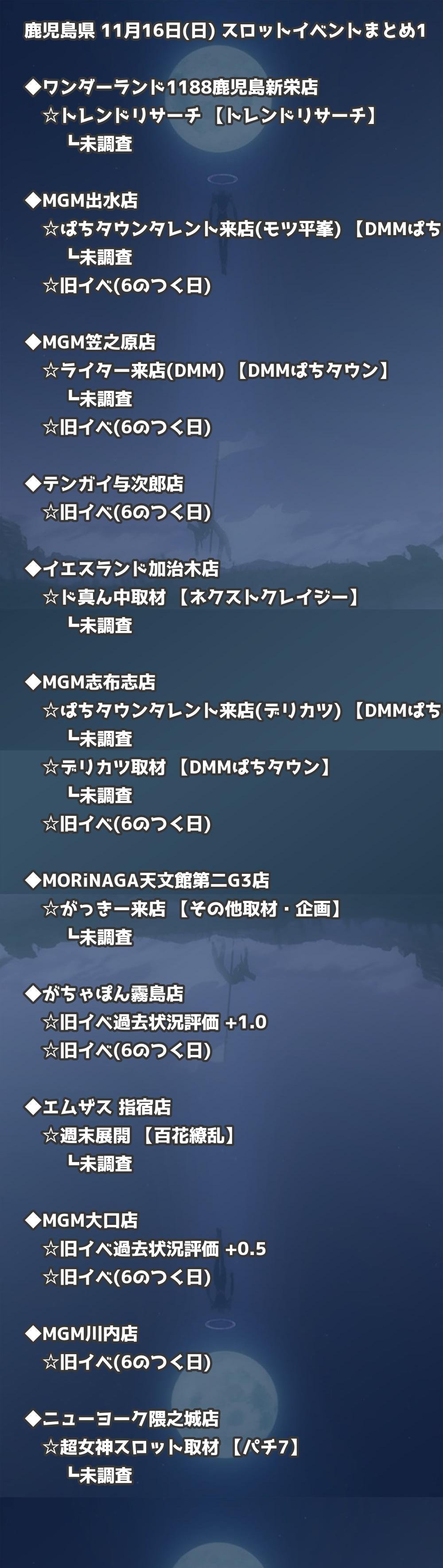 📊 鹿児島県 11月16日(日) 勝てるパチンコ・スロット取材店舗一覧|おすすめ順