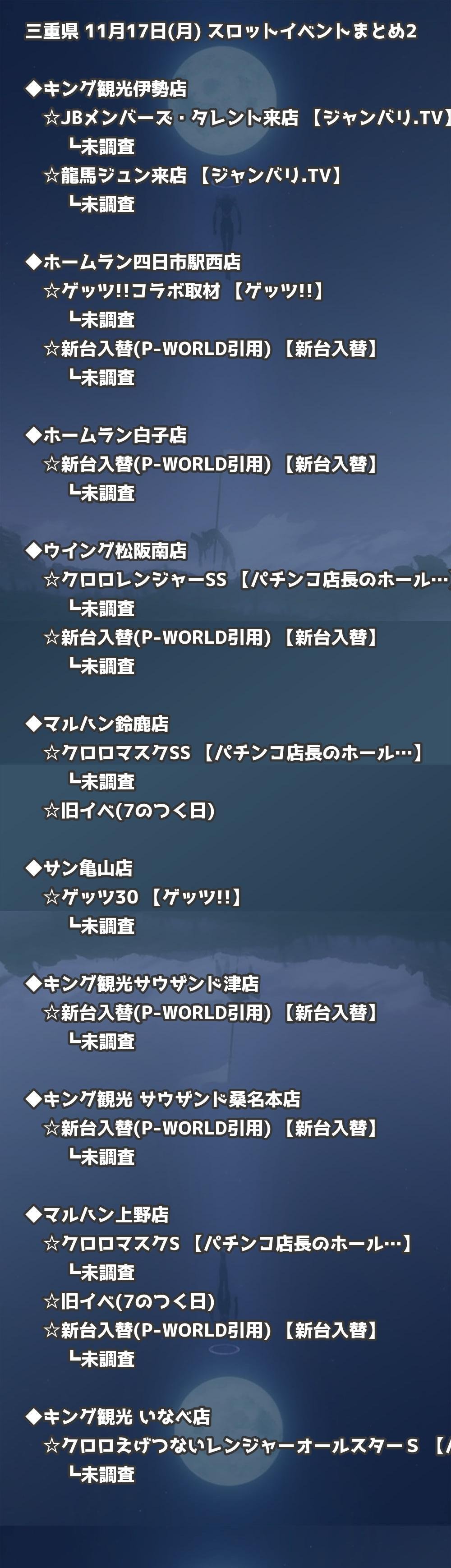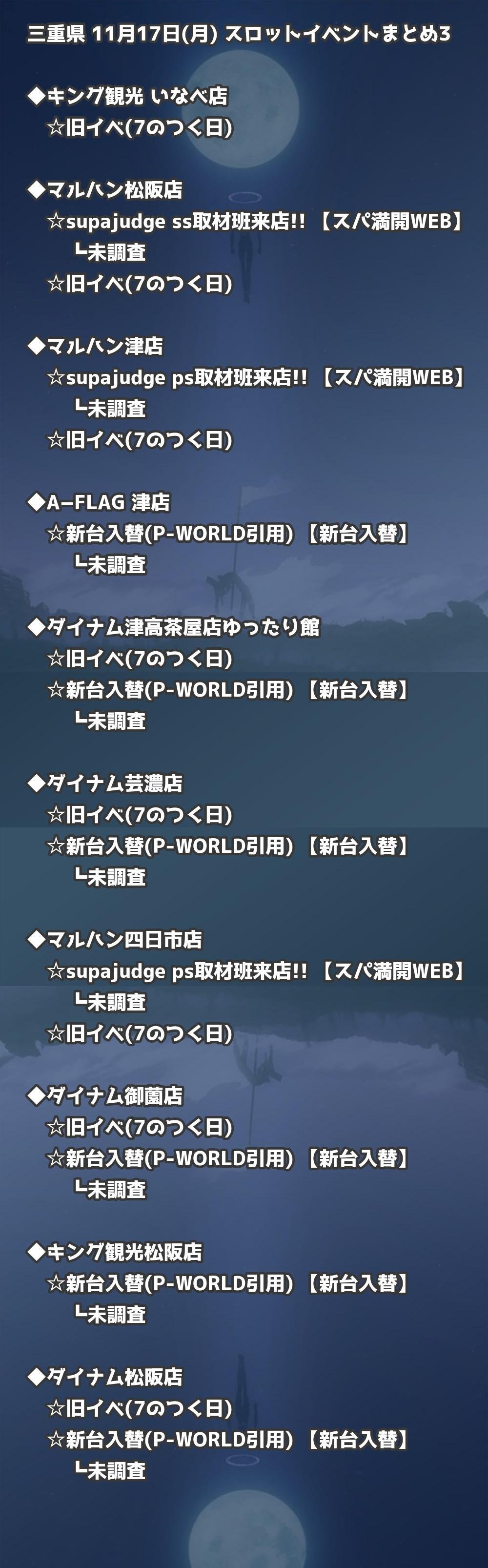 【三重県】11月17日(月) パチンコホールイベント取材まとめ記事です。