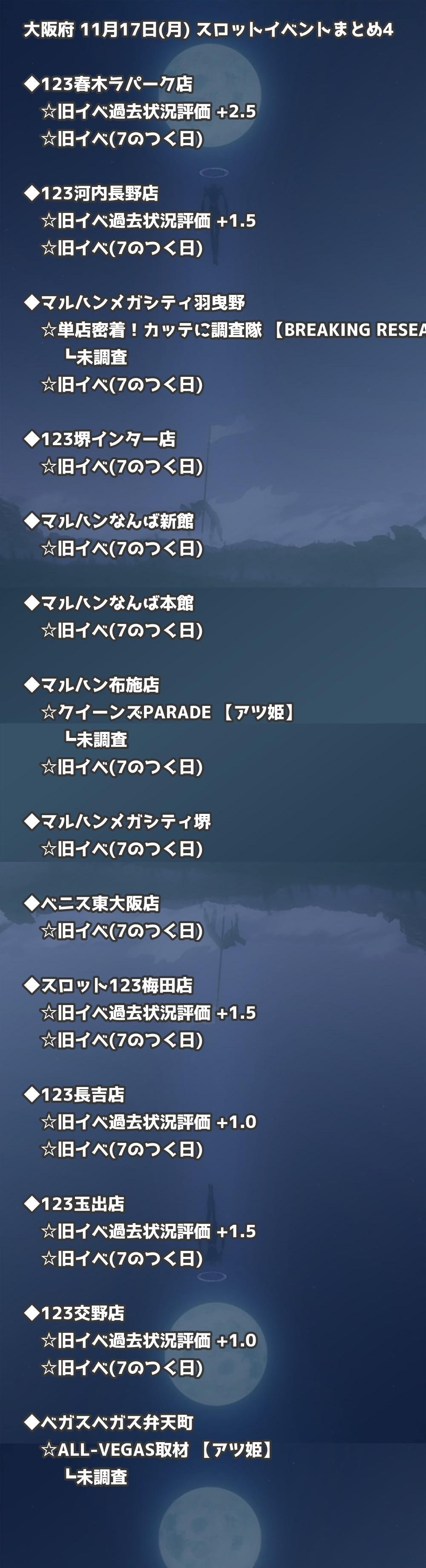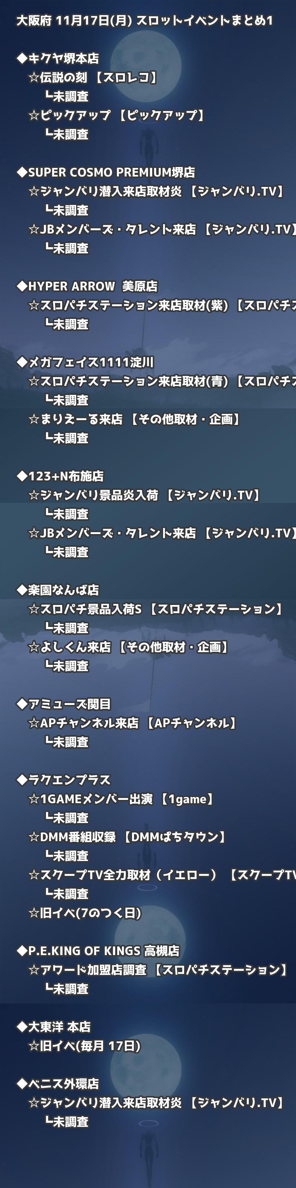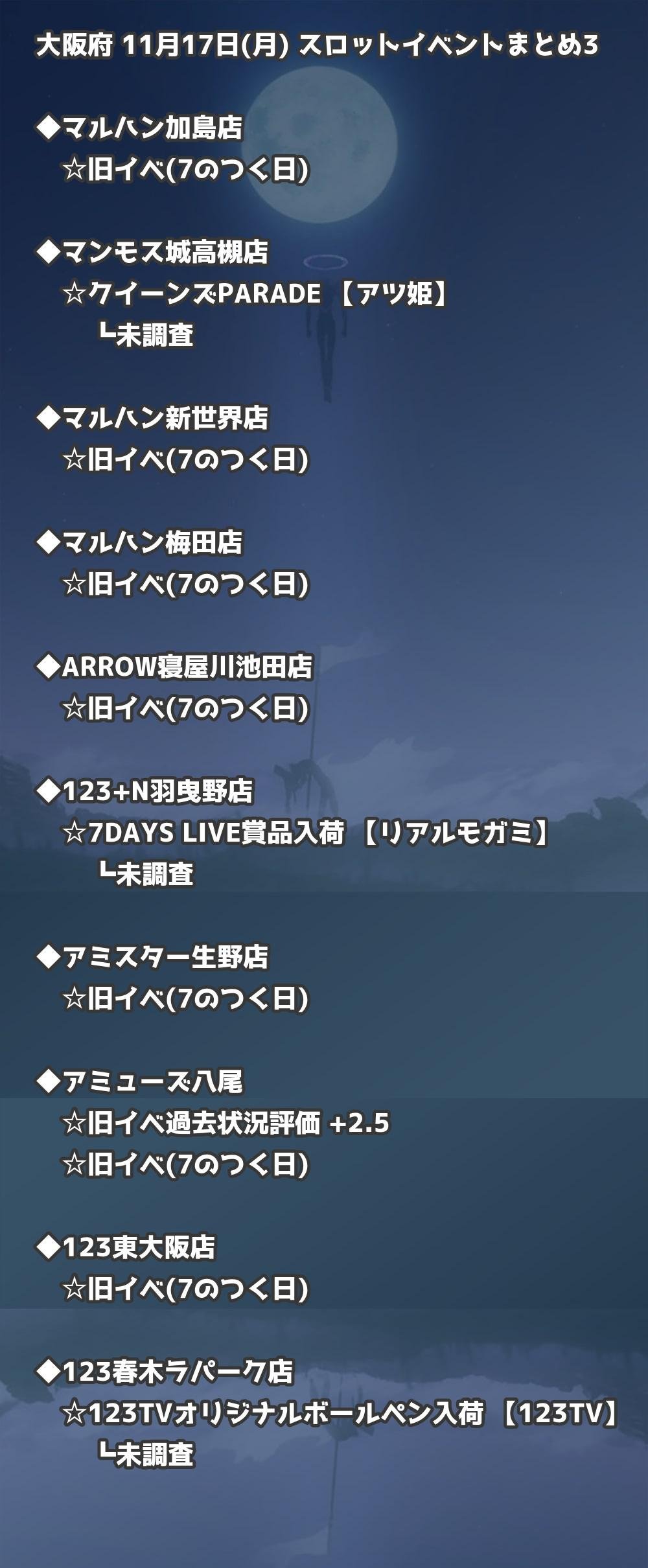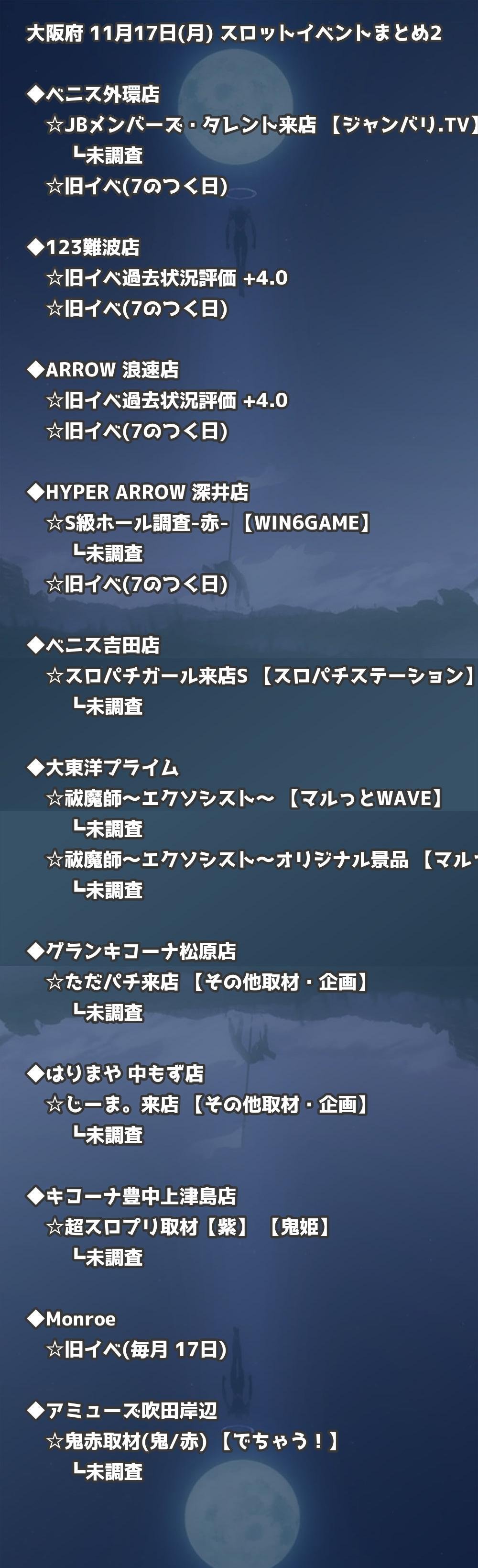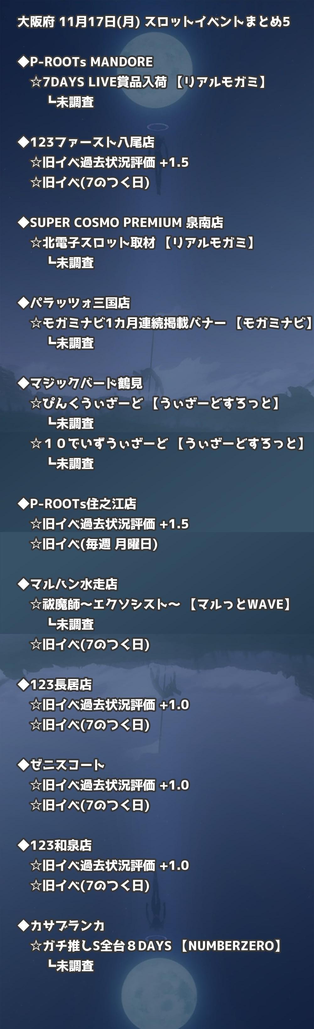 📊 大阪府 11月17日(月) 勝てるパチンコ・スロット取材店舗一覧|おすすめ順