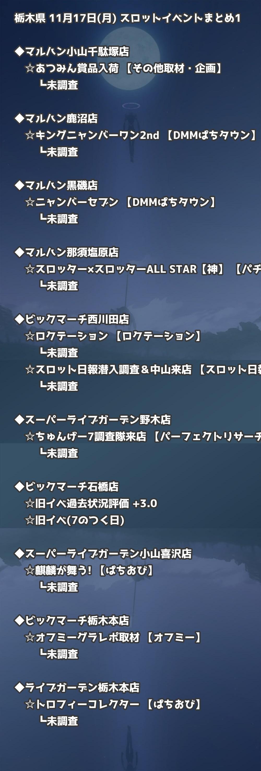 【栃木県】11月17日(月) パチンコホールイベント取材まとめ記事です。