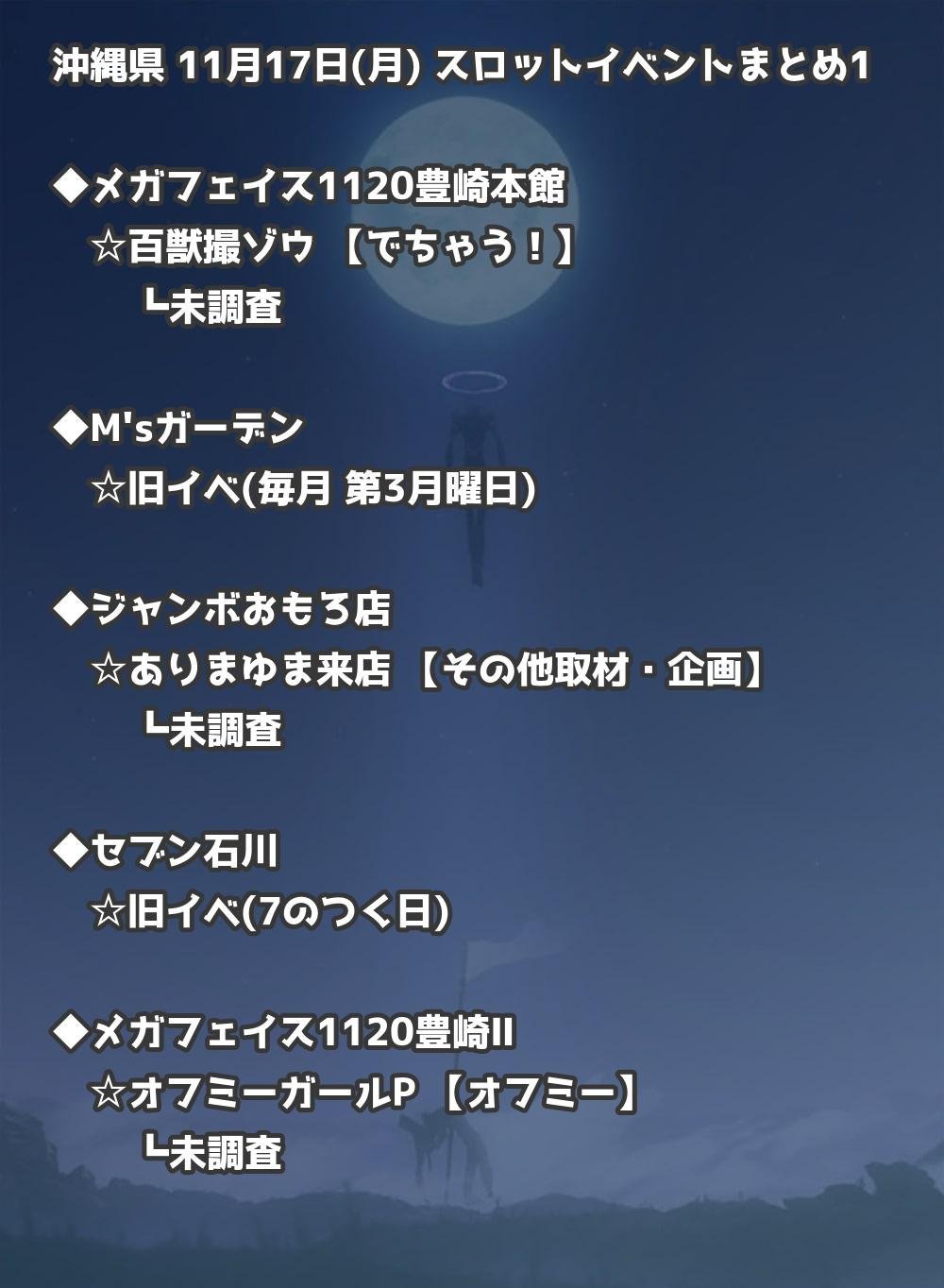 【沖縄県】11月17日(月) パチンコホールイベント取材まとめ記事です。