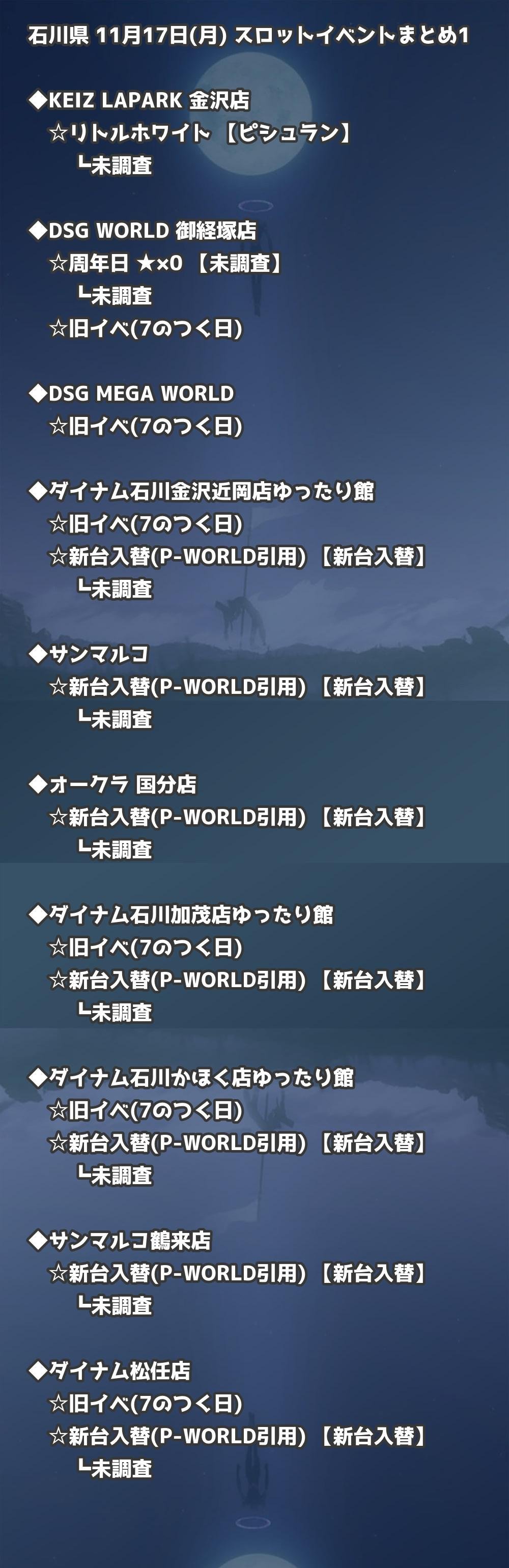 【石川県】11月17日(月) パチンコホールイベント取材まとめ記事です。