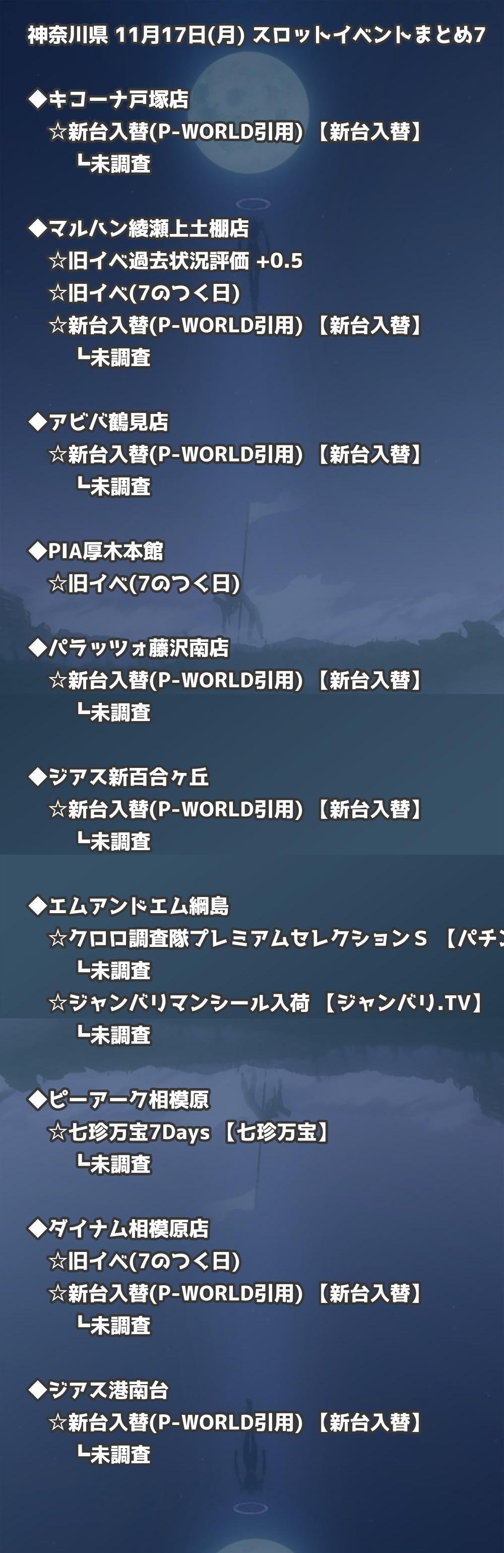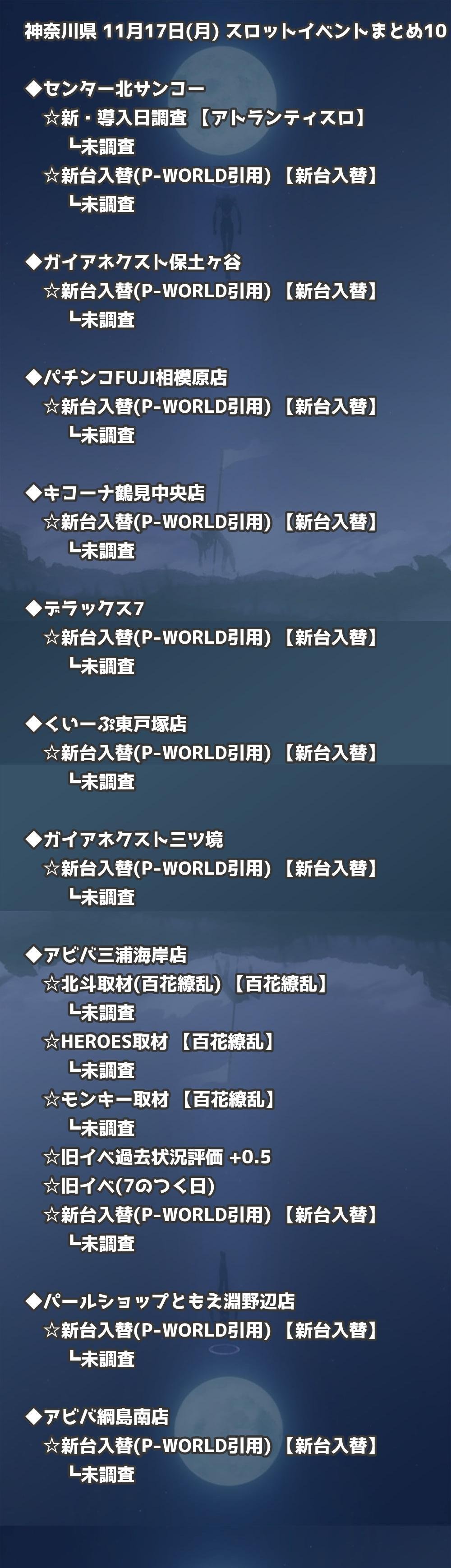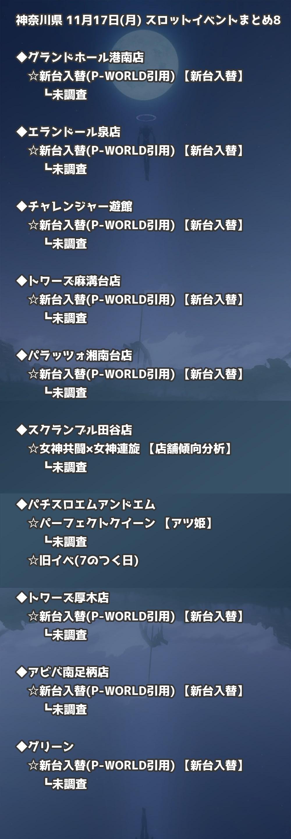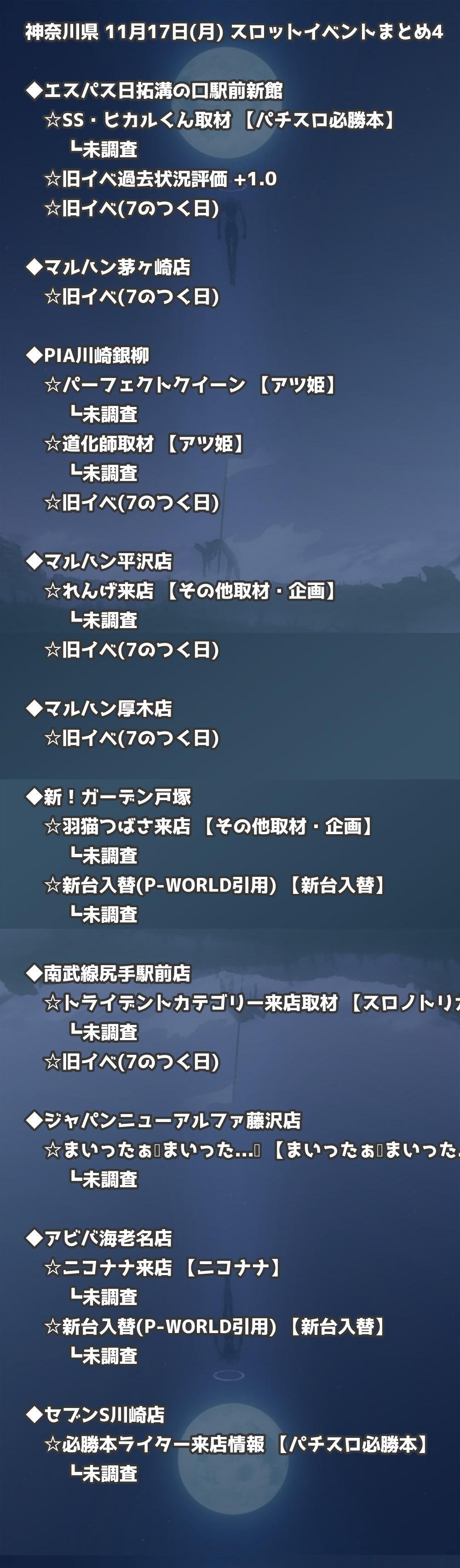 📊 神奈川県 11月17日(月) 勝てるパチンコ・スロット取材店舗一覧|おすすめ順