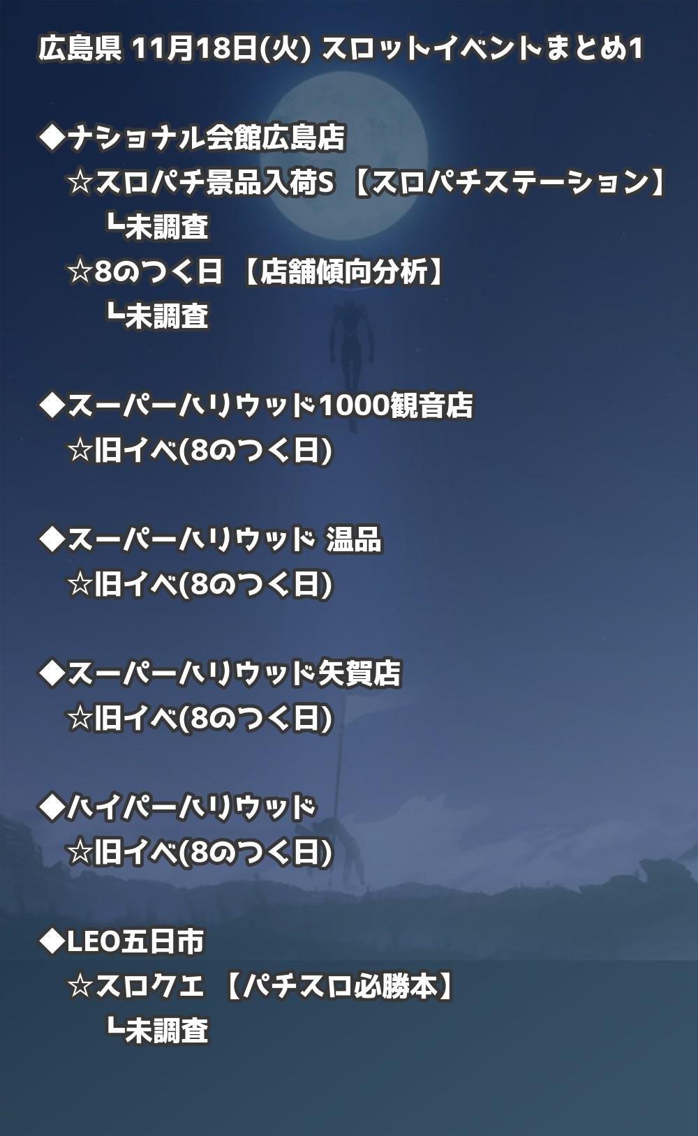 【広島県】11月18日(火) パチンコホールイベント取材まとめ記事です。