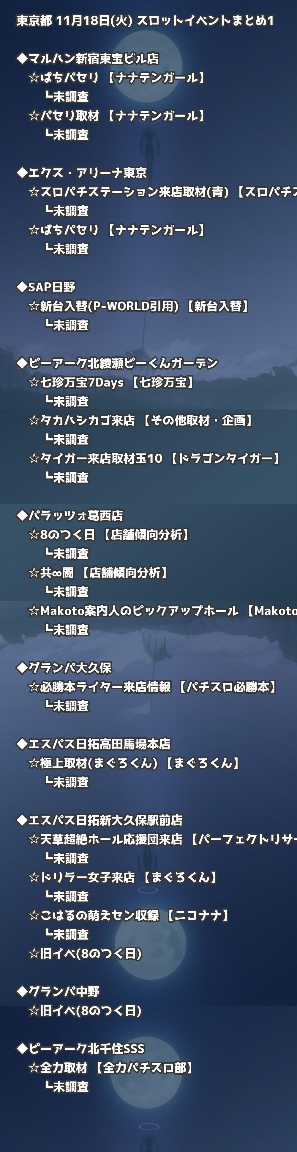 【東京都】11月18日(火) パチンコホールイベント取材まとめ記事です。