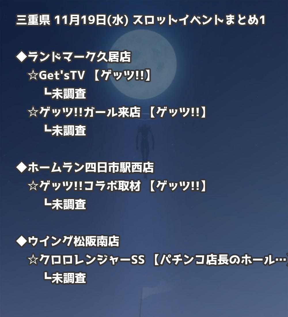 【三重県】11月19日(水) パチンコホールイベント取材まとめ記事です。
