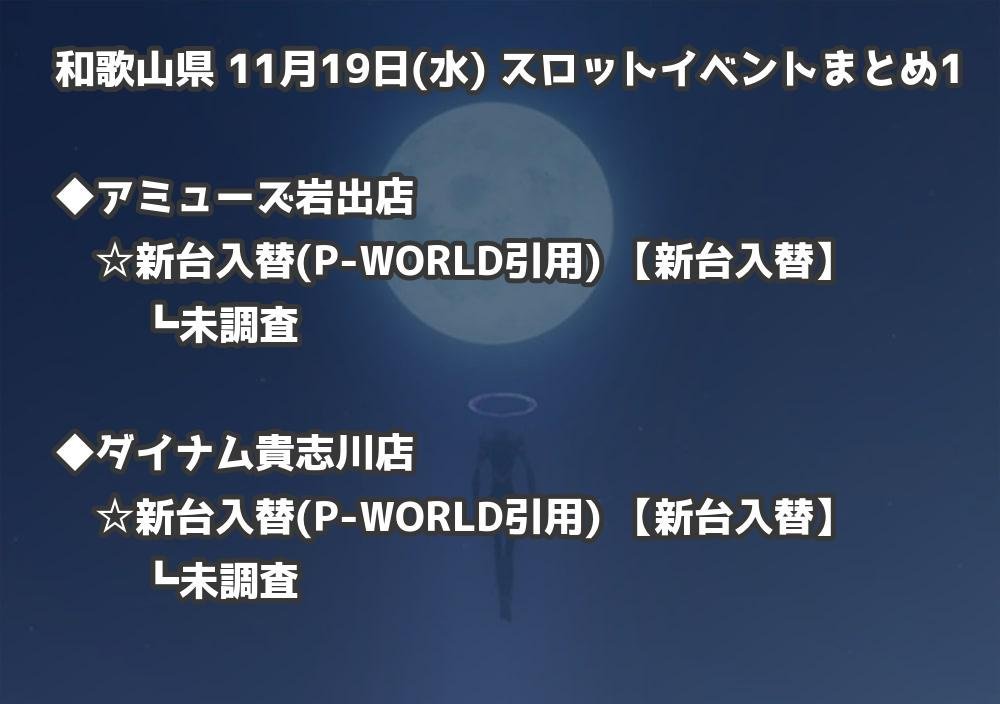 【和歌山県】11月19日(水) パチンコホールイベント取材まとめ記事です。
